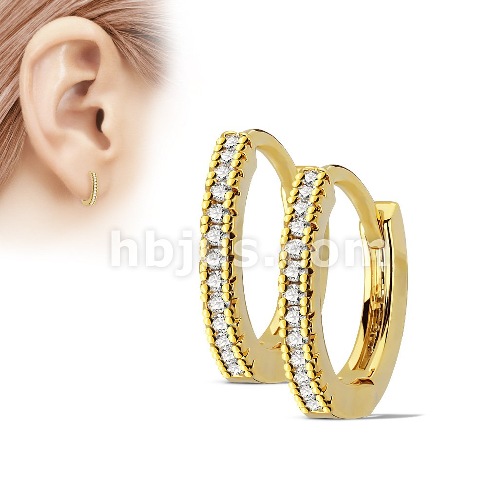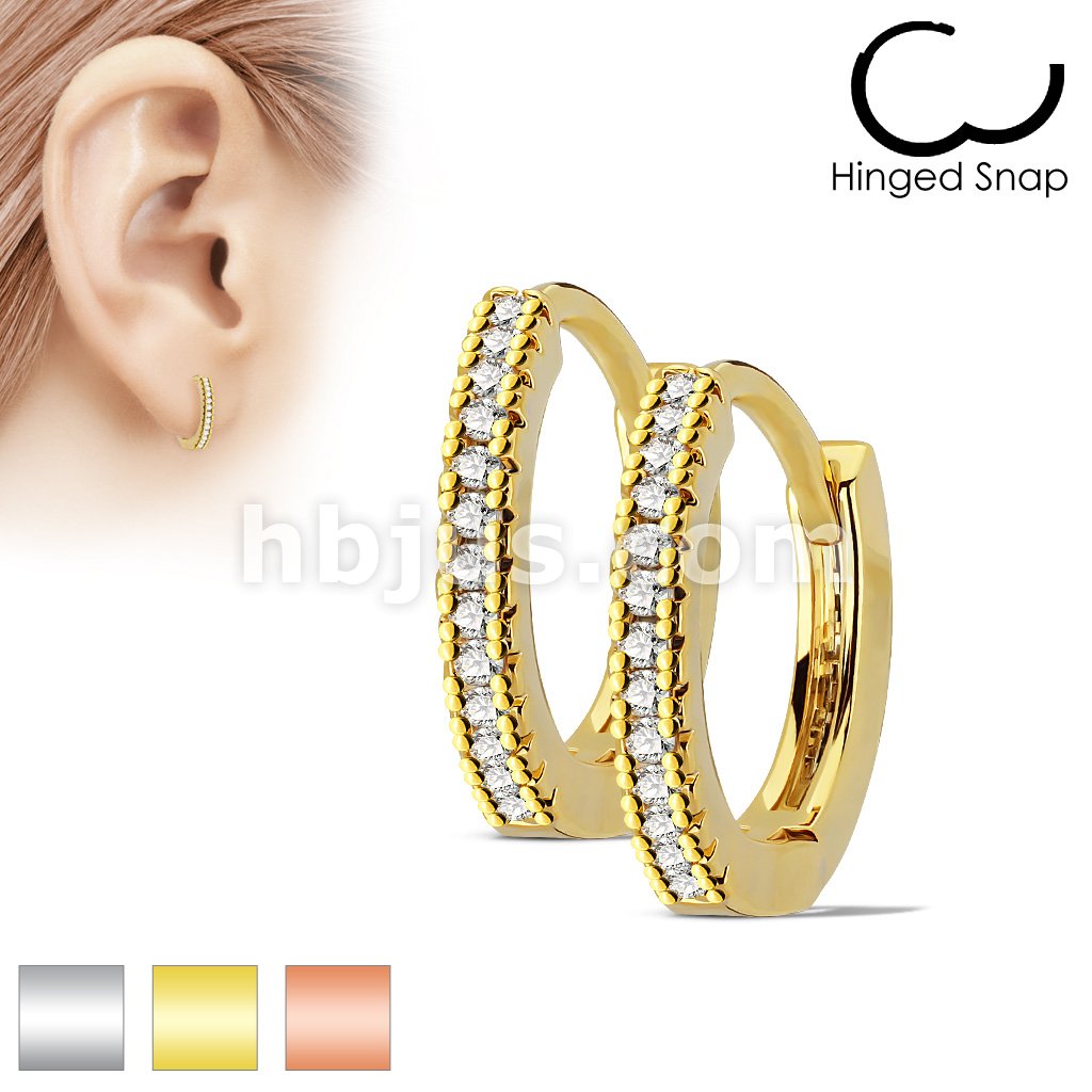 Pair of Micro CZ Paved 316L Surgical Steel Post Hoop Earrings