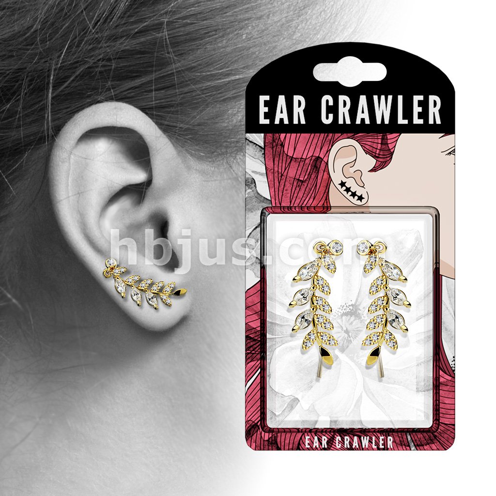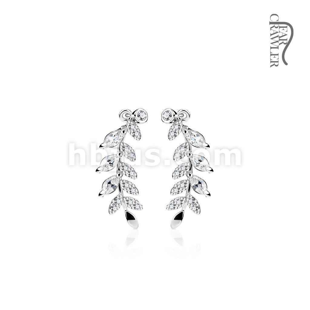 Pair of Marquise Cut CZs and CZ Paved Leaf Prepacked Ear Crawler/Ear Climber