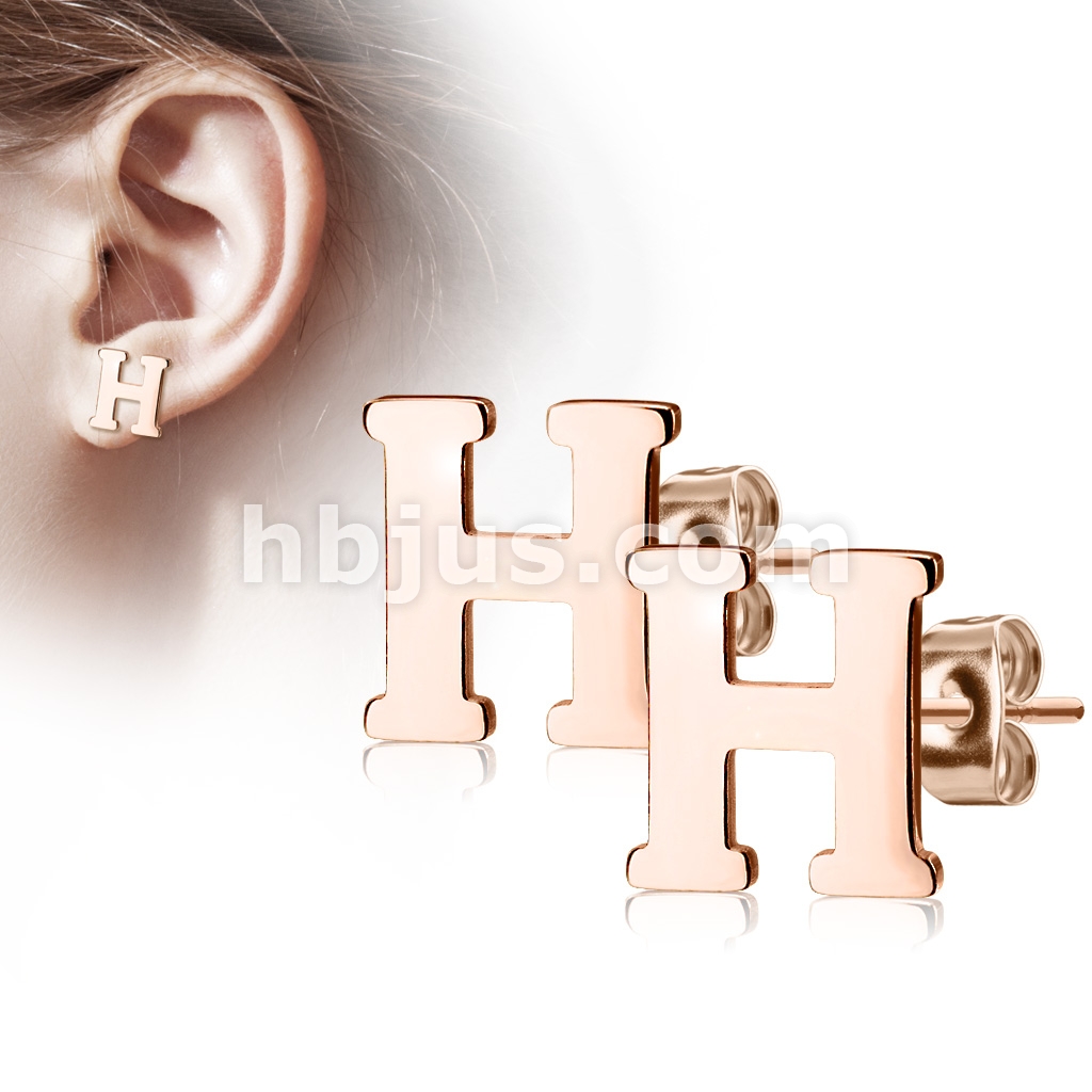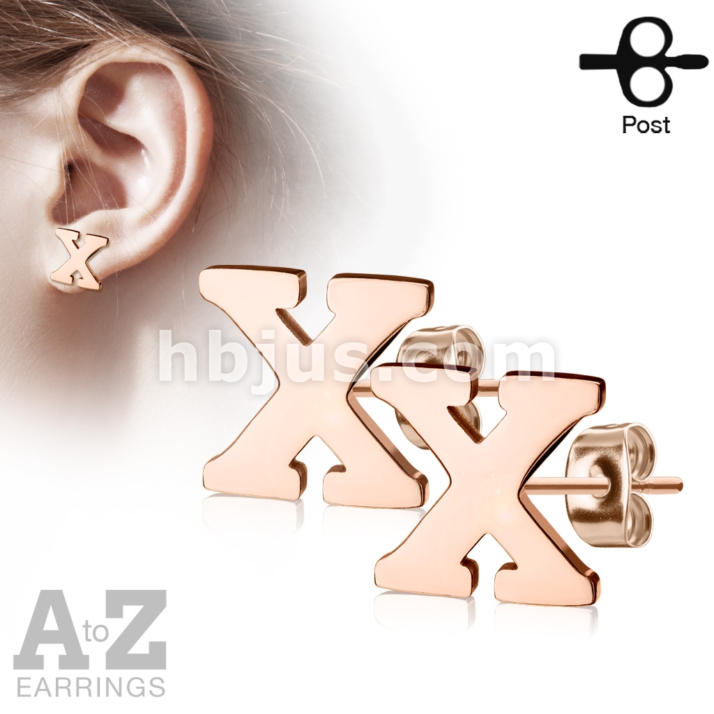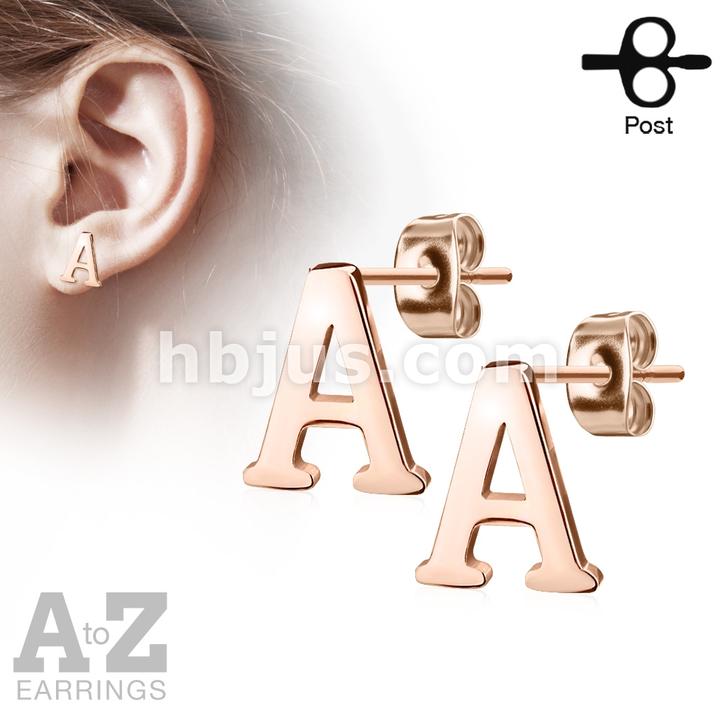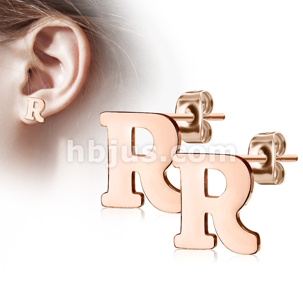 Pair of Rose Gold IP Alphabet Initial 316L Stainless Steel Earring Studs