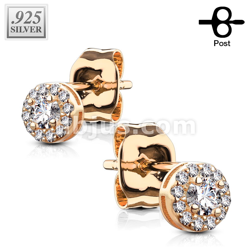 Pair of .925 Sterling Silver Stud Earrings/CZ Paved Round With CZ Center