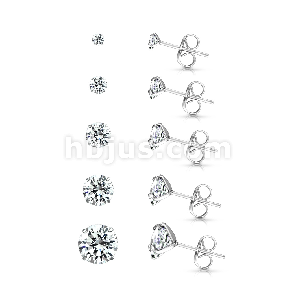 20 Pairs Of Assorted Size CZ Set .925 Sterling Silver Earring Studs Preloaded Into Puff Pad Acrylic Display Case (4 Pairs X 5 Sizes)
