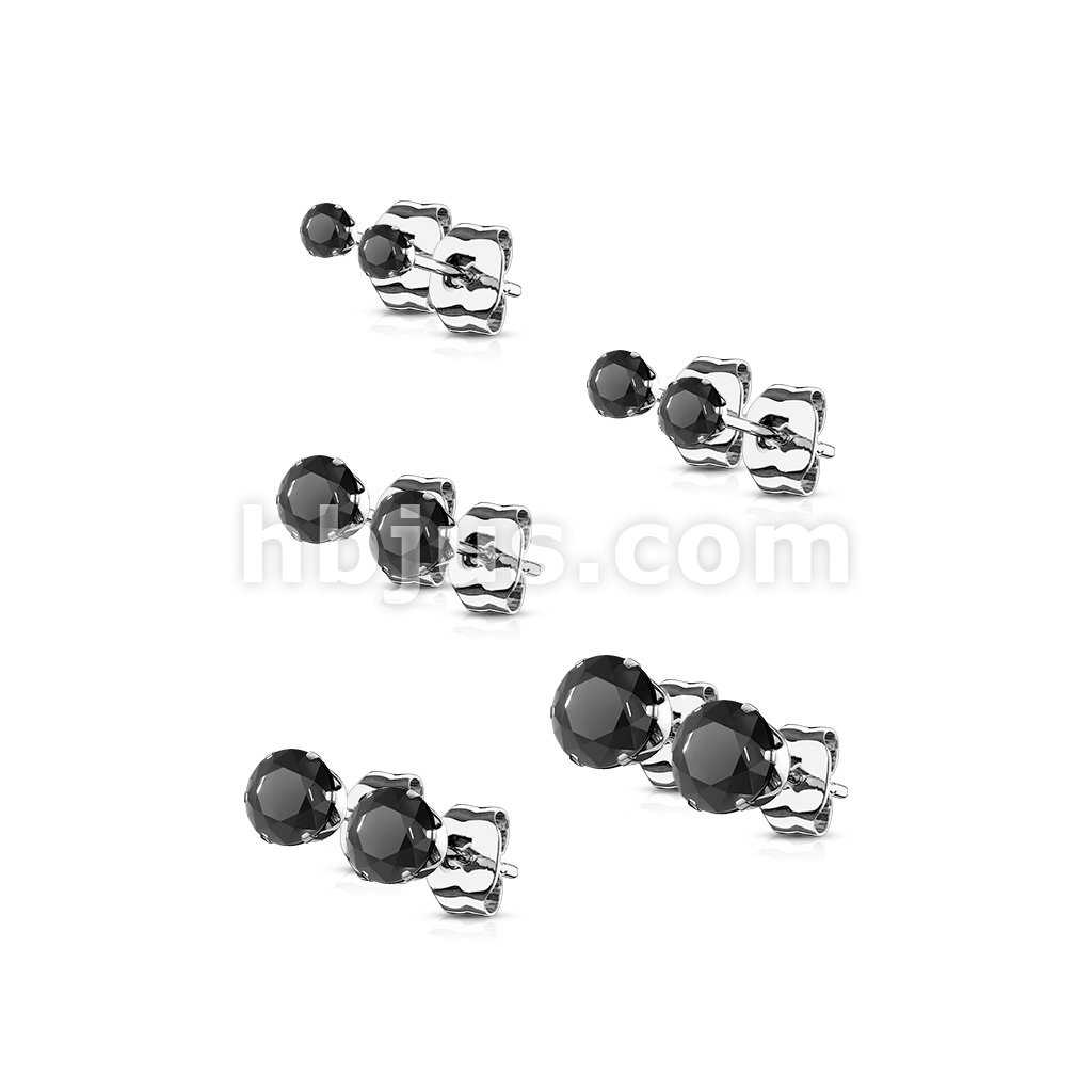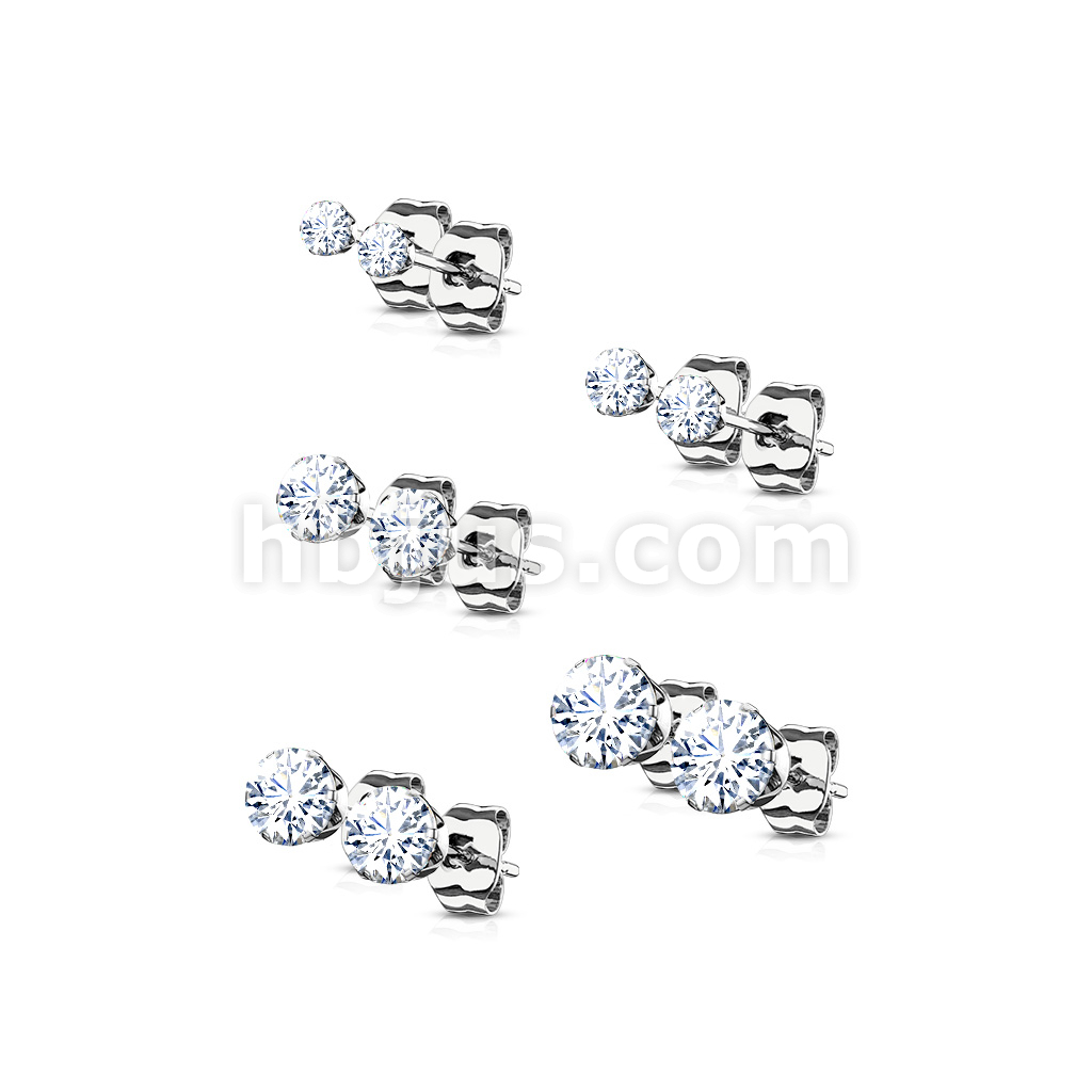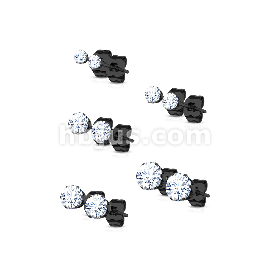 5 Pairs of Assorted Sizes Prong Set Round CZ Stainless Steel Stud Earrings Pack