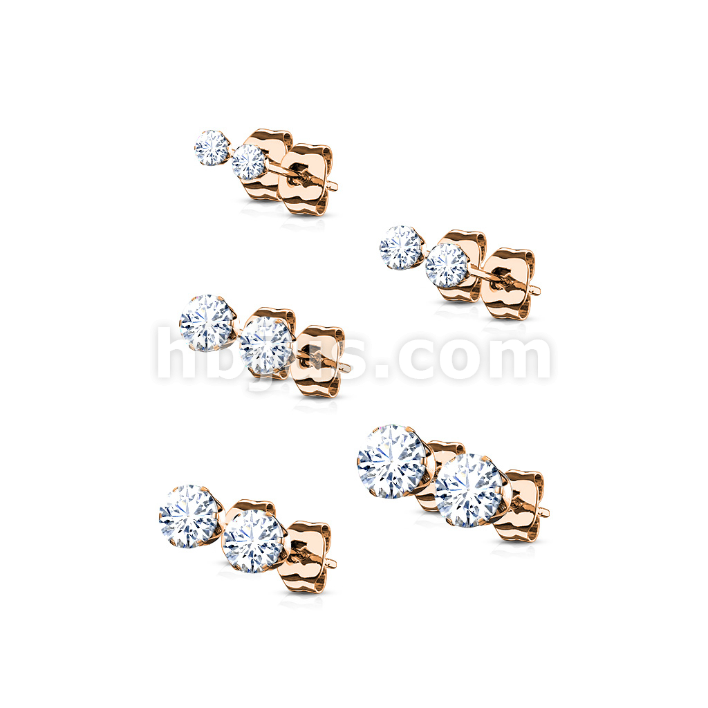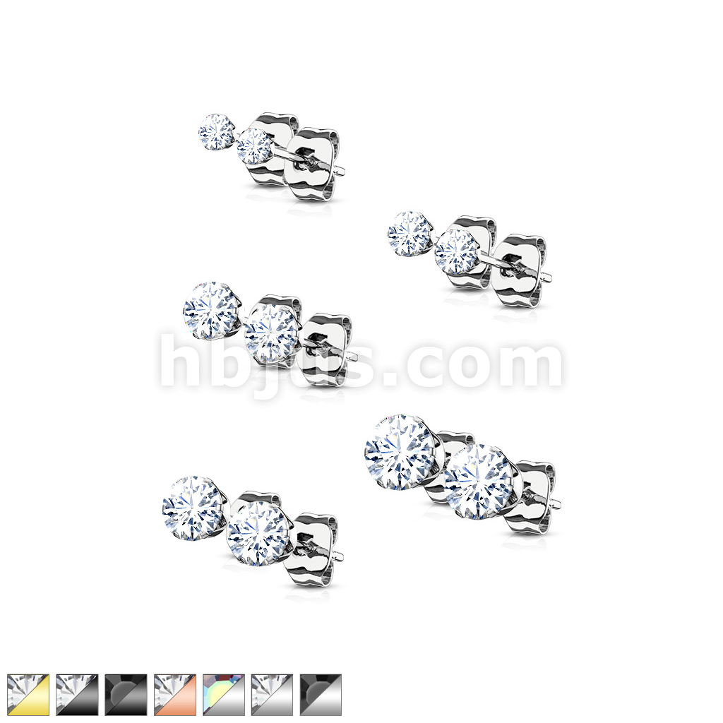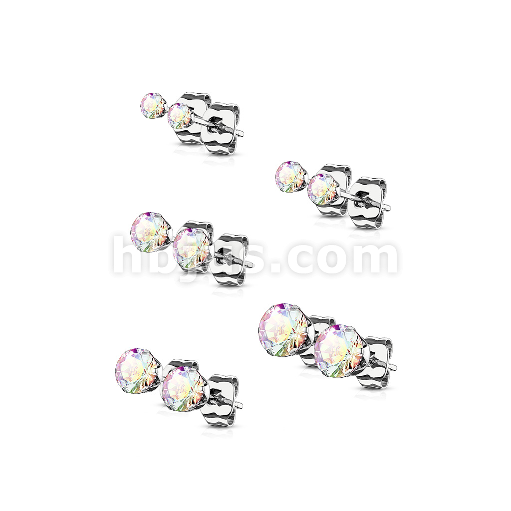 5 Pairs of Assorted Sizes Prong Set Round CZ Stainless Steel Stud Earrings Pack