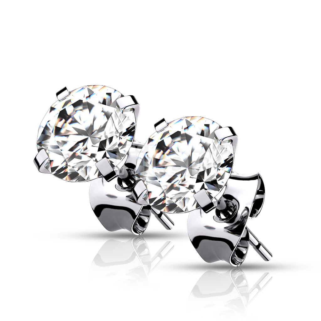 Implant Grade Titanium Pair of Prong Set CZ Earring Studs
