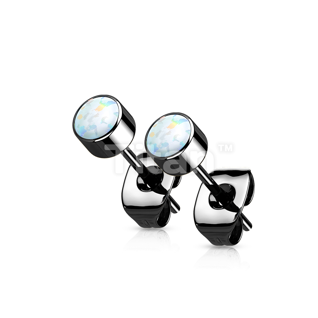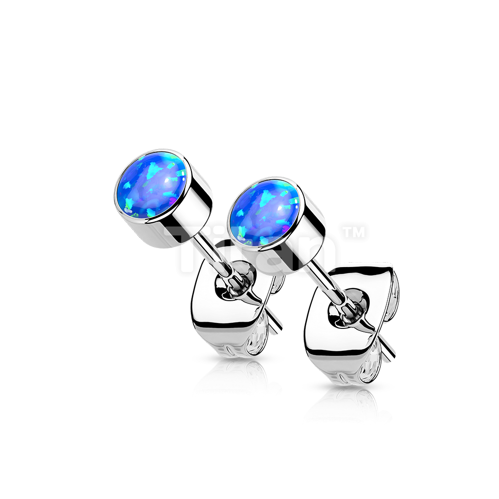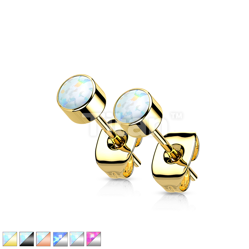Pair of Implant Grade Titanium Bezel Set Round Opal Earring Studs