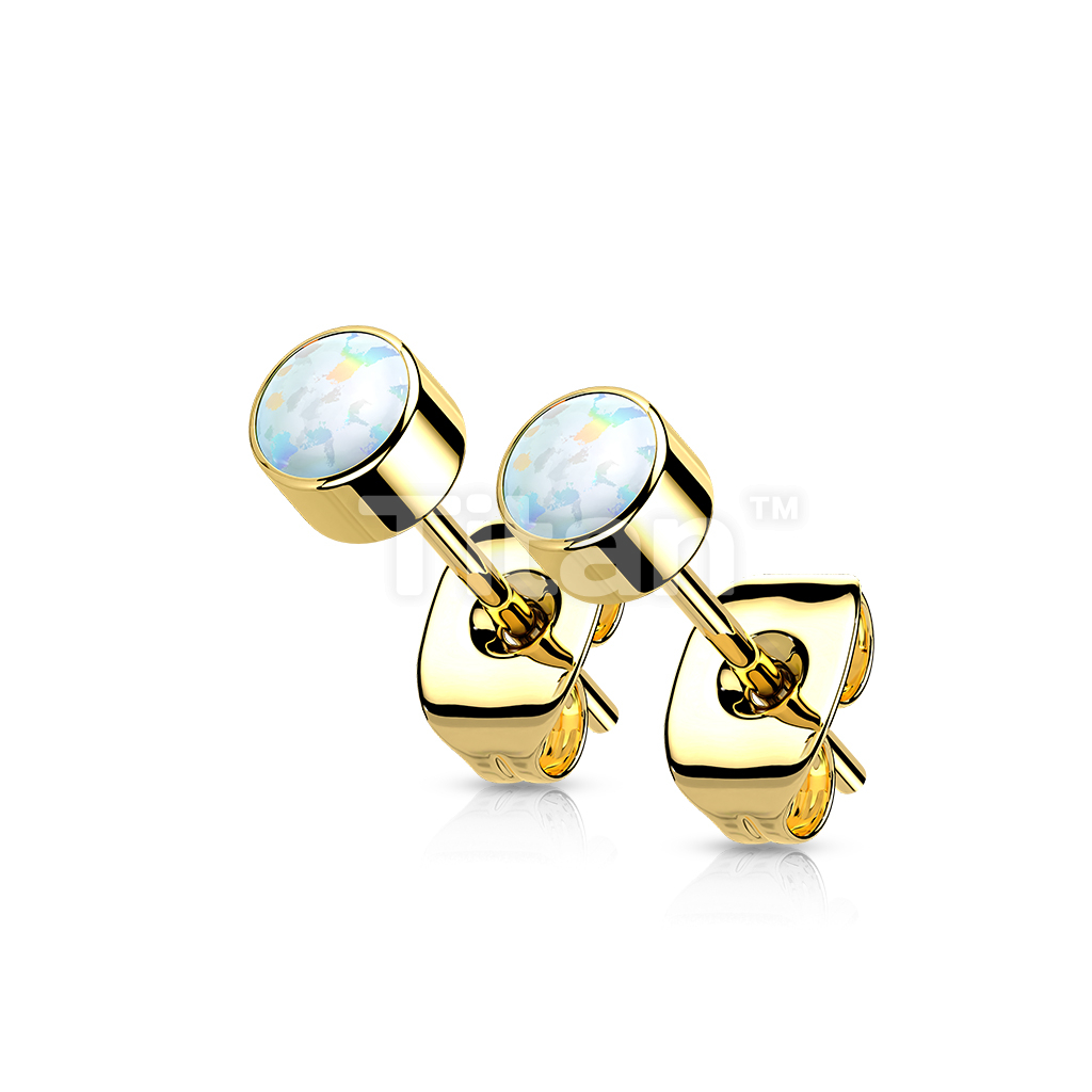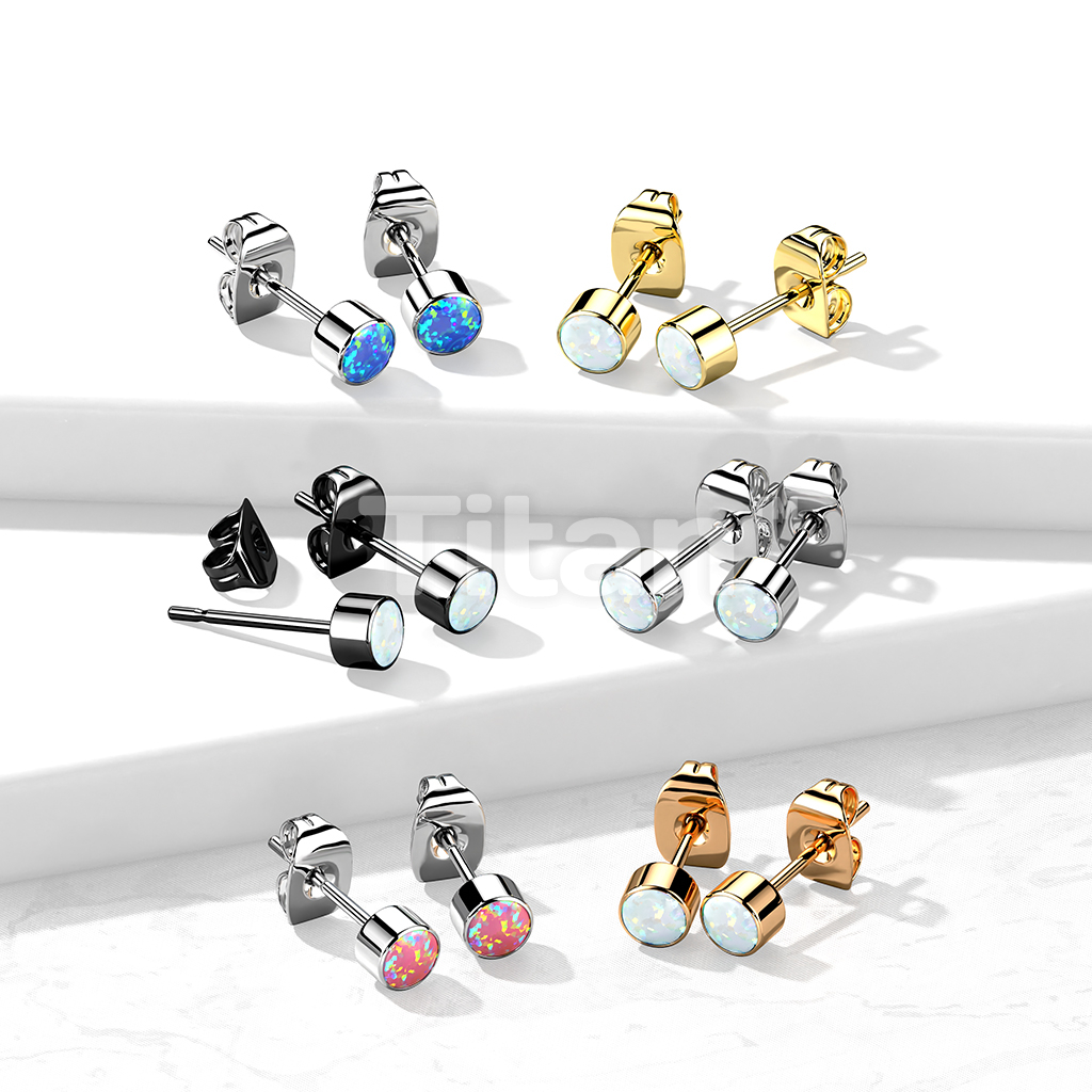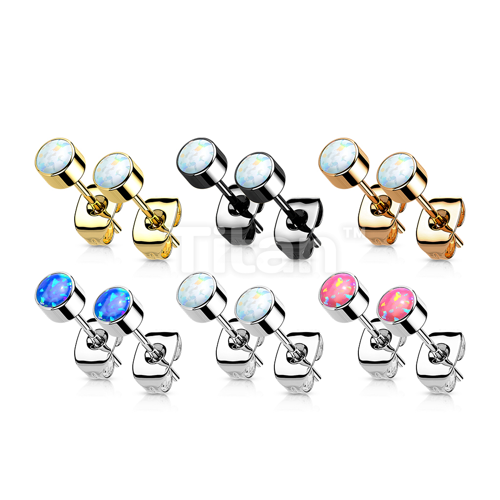 Pair of Implant Grade Titanium Bezel Set Round Opal Earring Studs