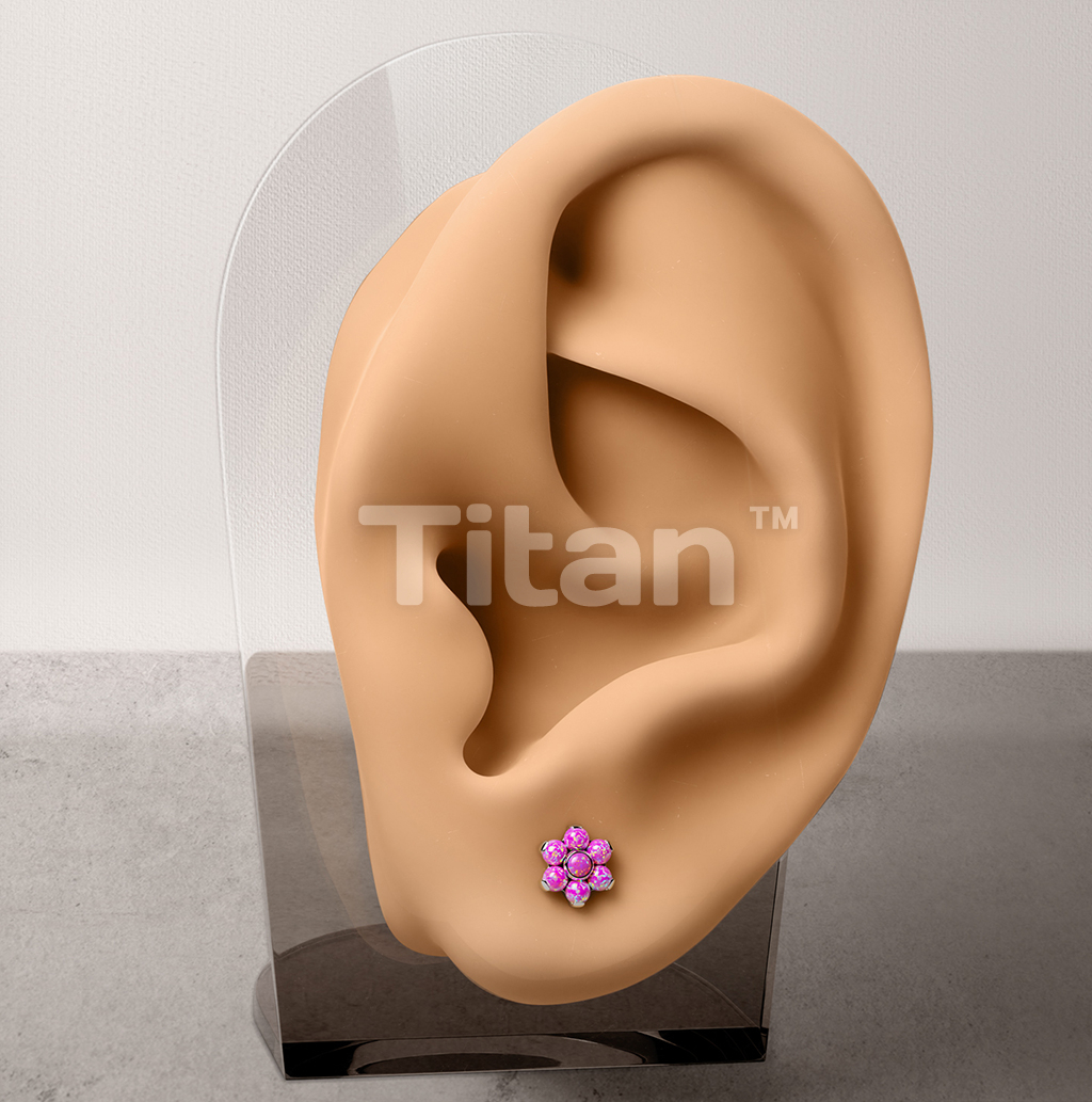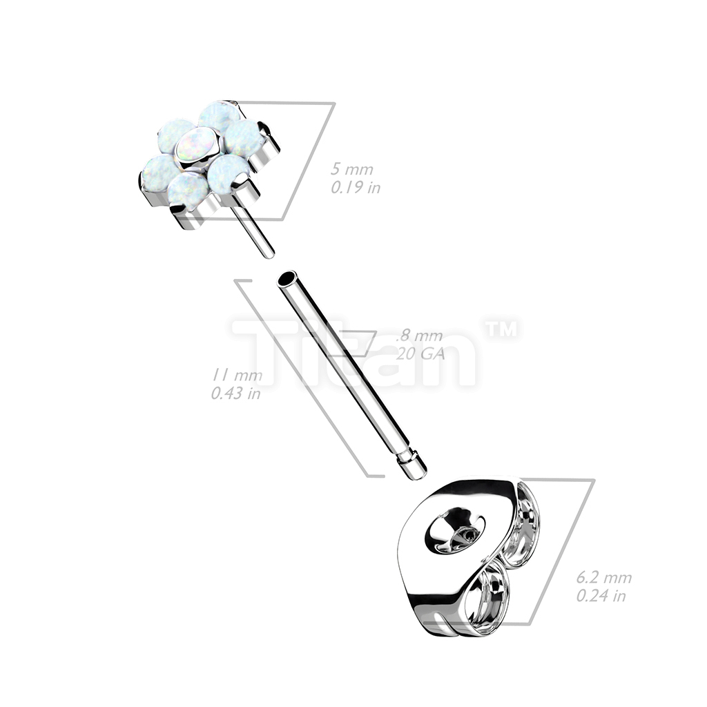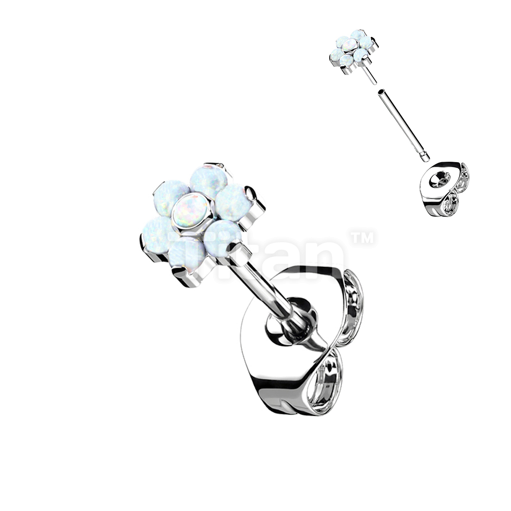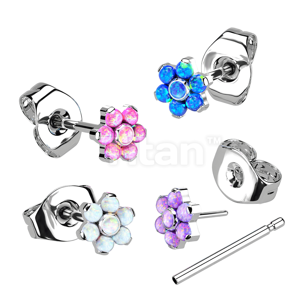 1pc Implant Grade Titanium Threadless Earring Stud With Opal Flower Top