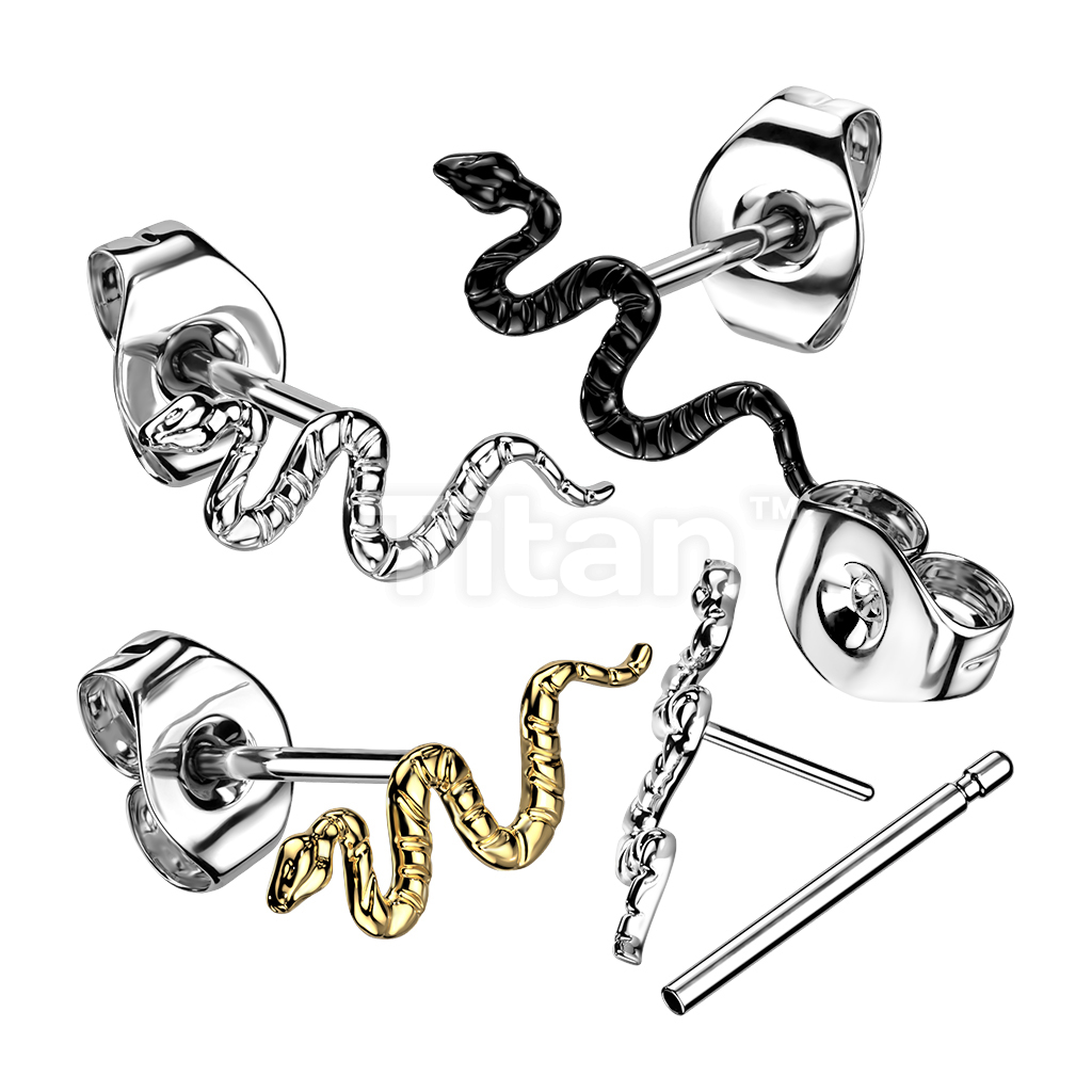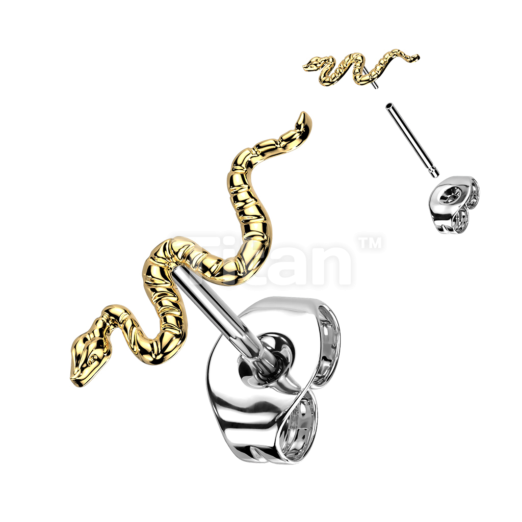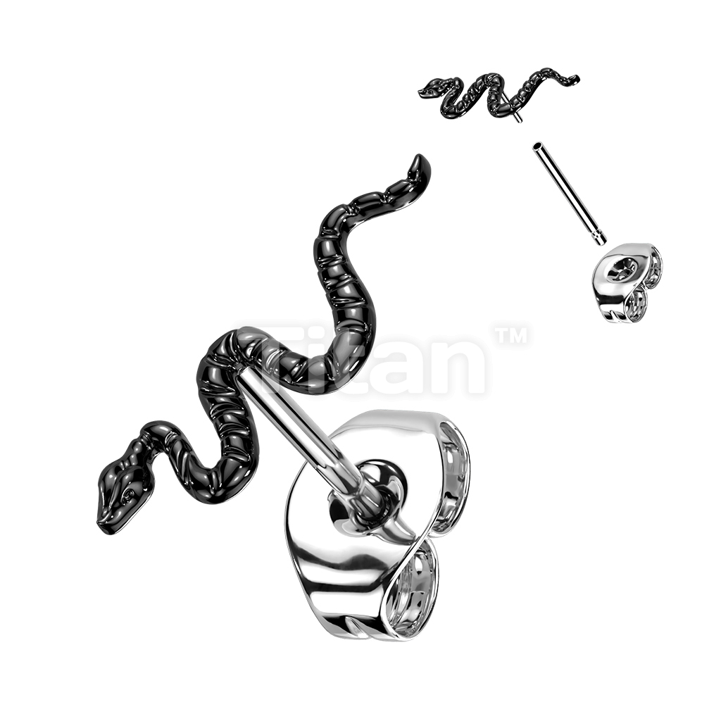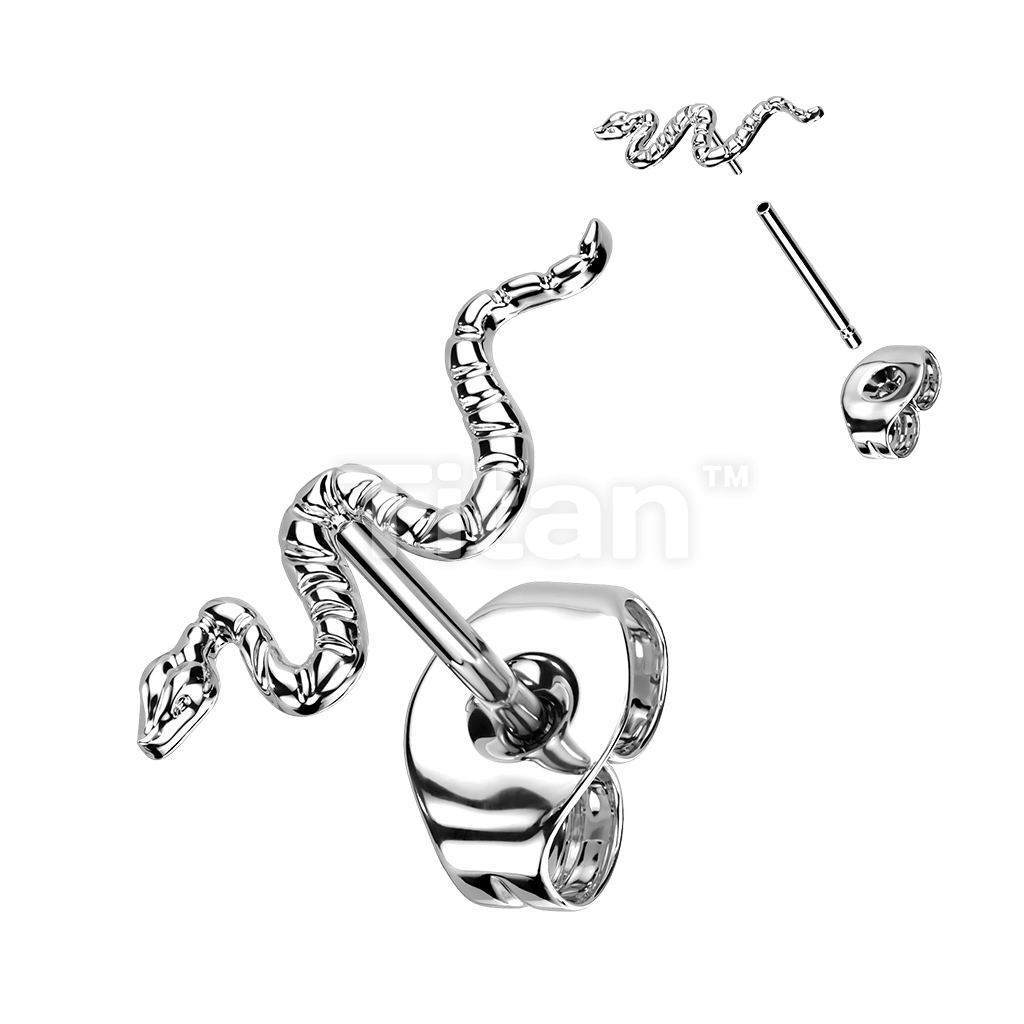 1pc Implant Grade Titanium Threadless Push In Snake Top Earring Stud