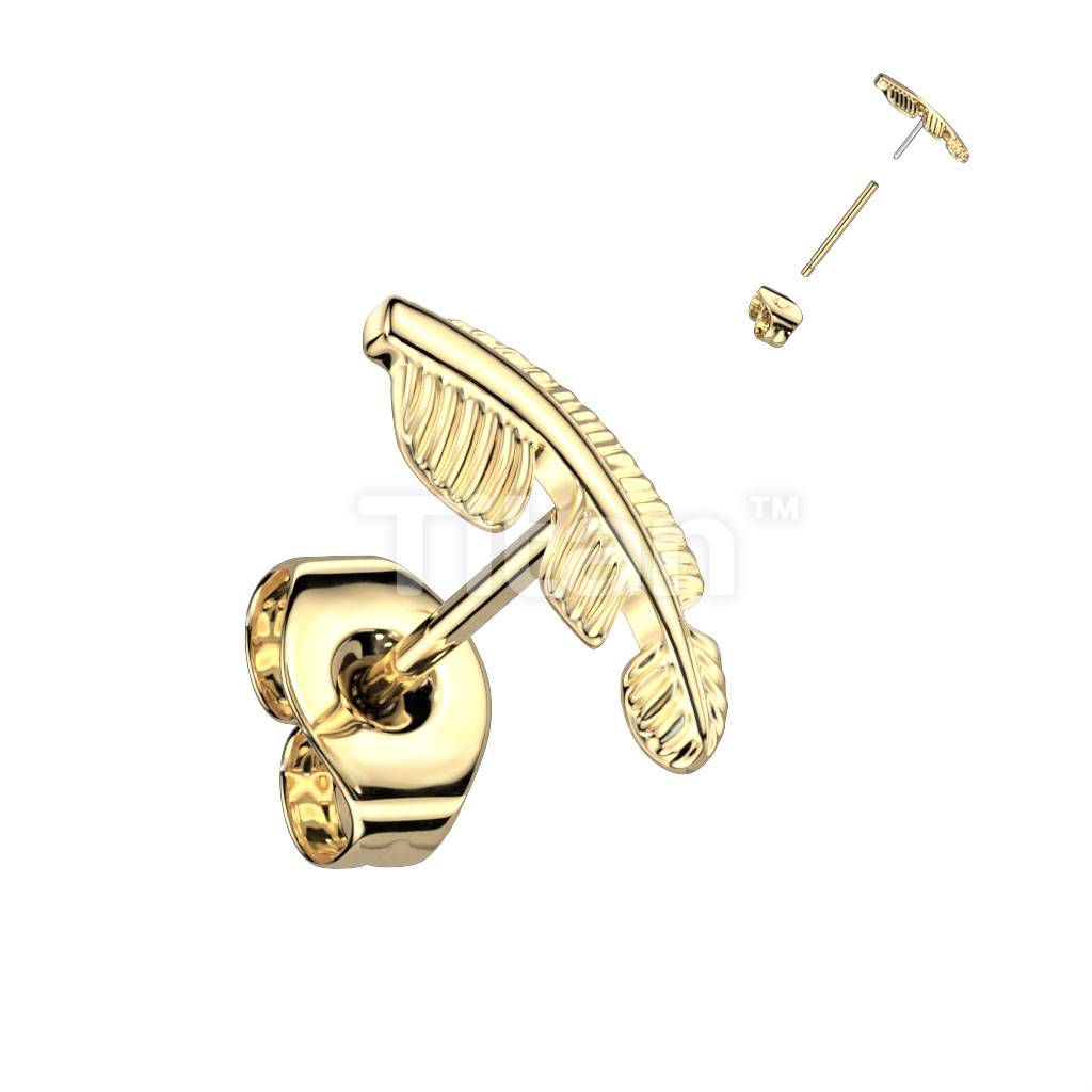 1pc Implant Grade Titanium Threadless Push in Leaf Top Earring Stud