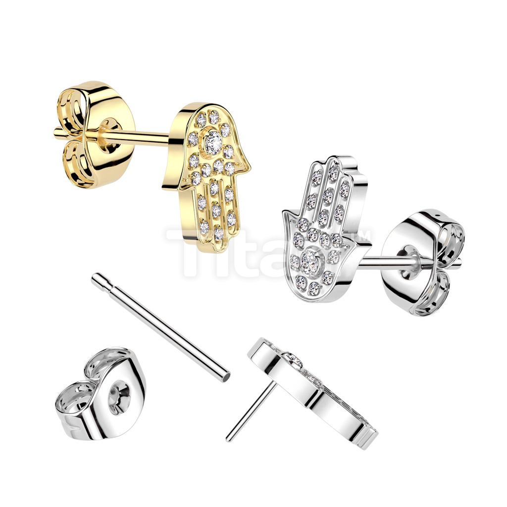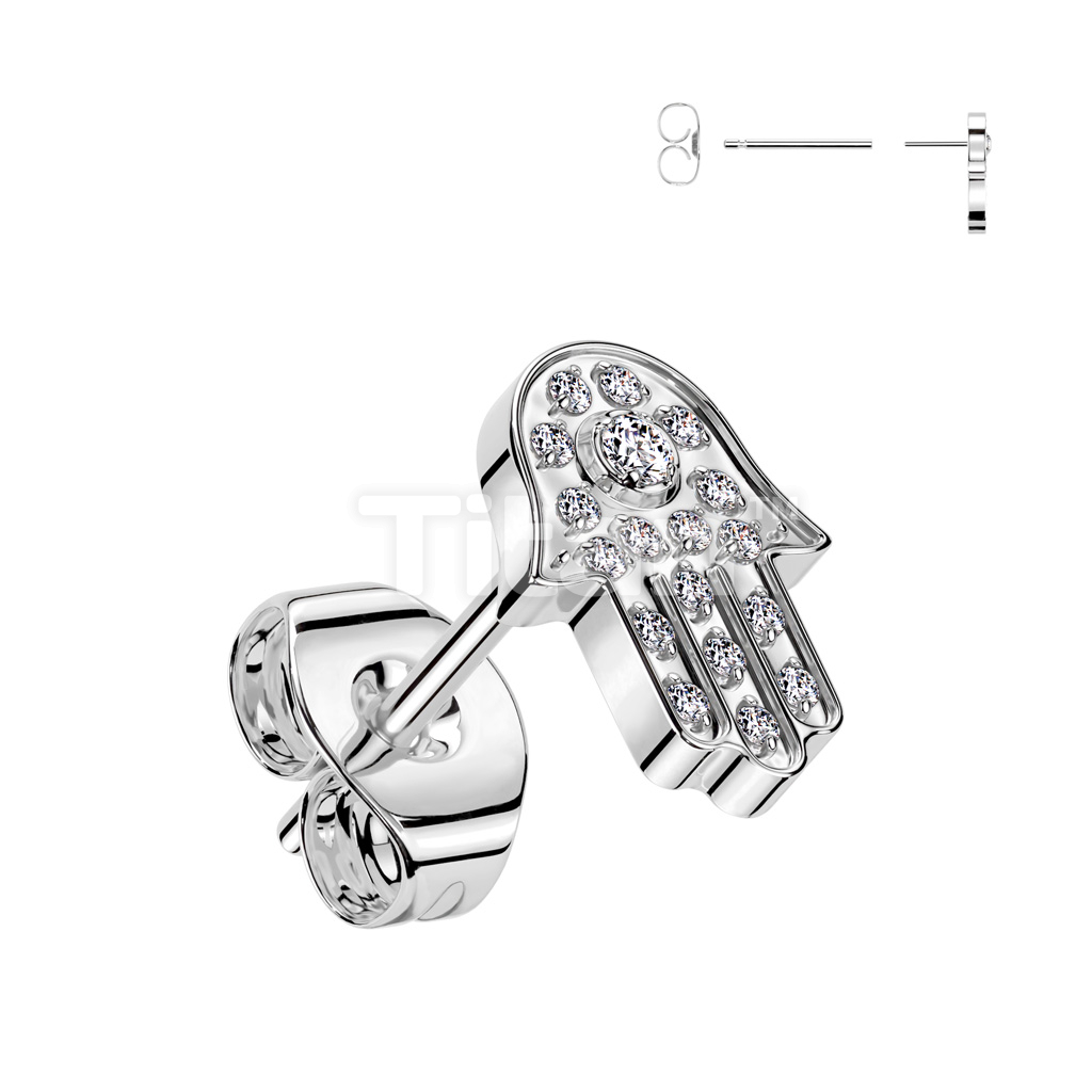 1pc Implant Grade Titanium Threadless Push in Earring Stud With Hamsa Pave CZ Top