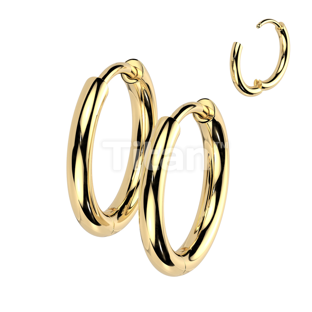 Pair of Implant Grade Titanium 2mm Thick Hinged Plain Round Hoop Earrings