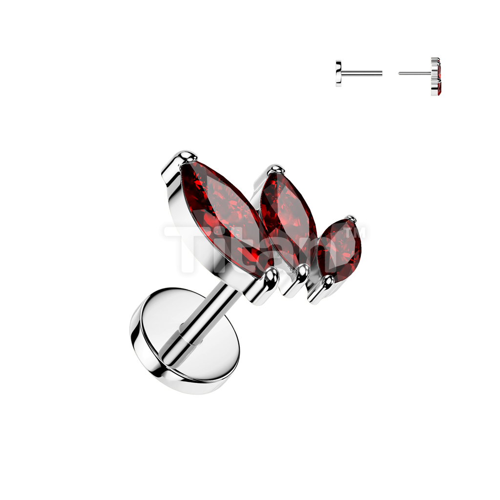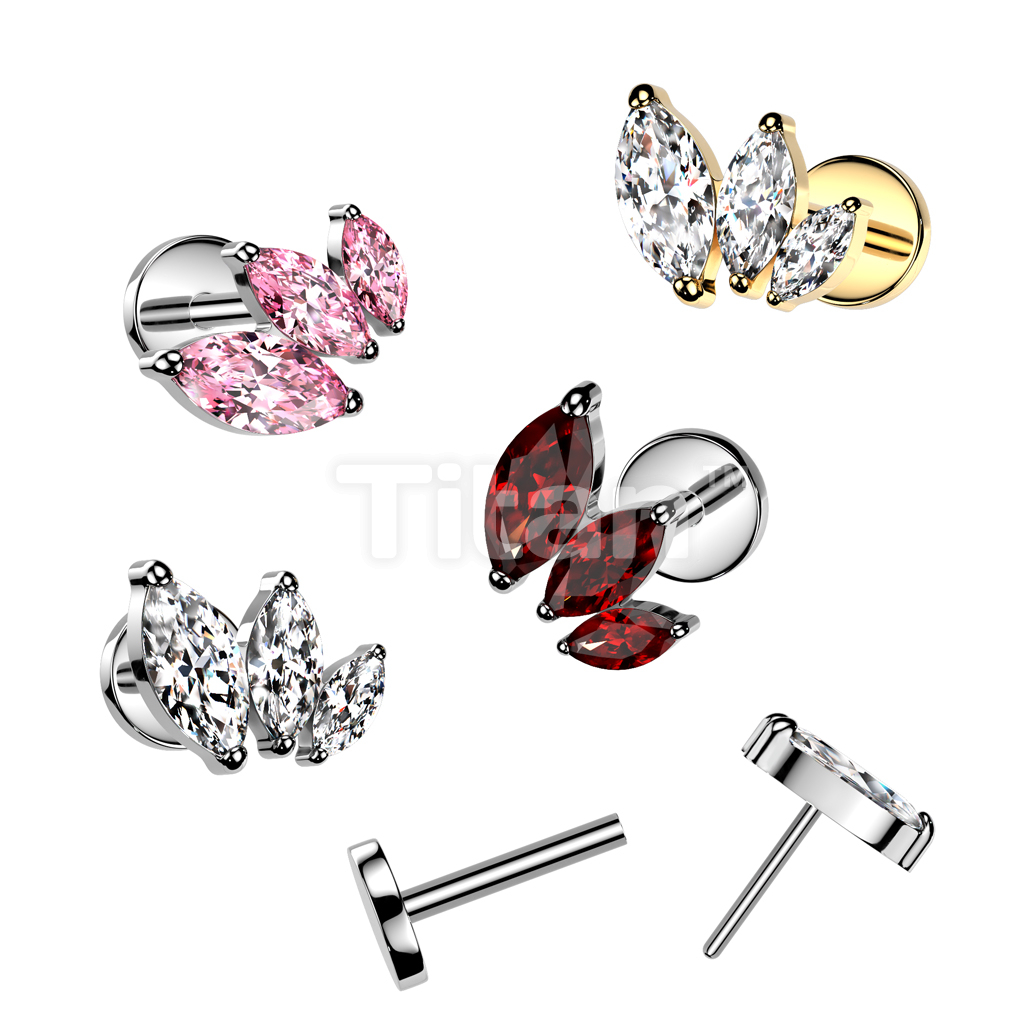 Implant Grade Titanium Threadless Push In 20ga Flat Back Earring Stud With Triple Marquise CZ Top