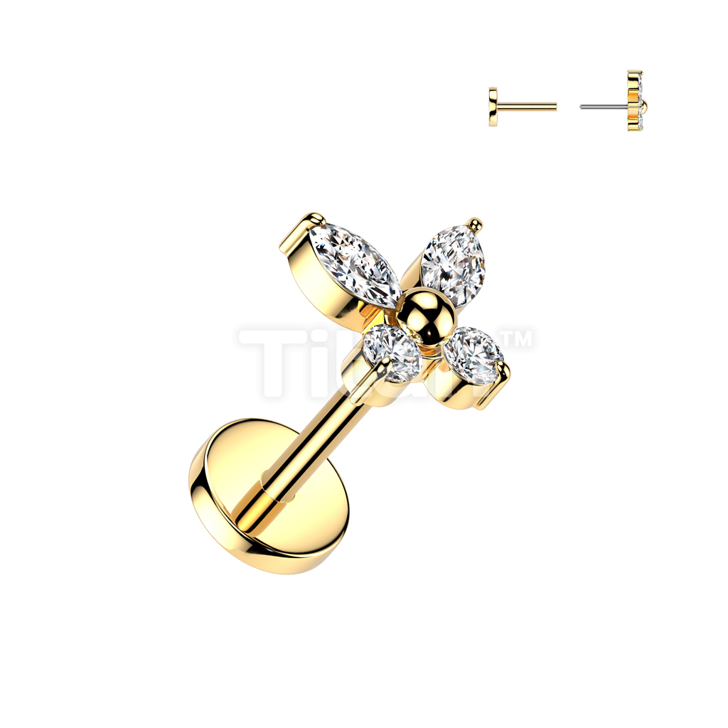 Implant Grade Titanium Threadless Push In 20ga Flat Back Earring Stud With CZ Butterfly Top