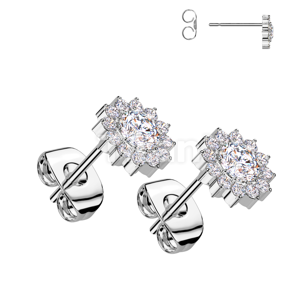 Pair of Implant Grade Titanium CZ Flower Earrings