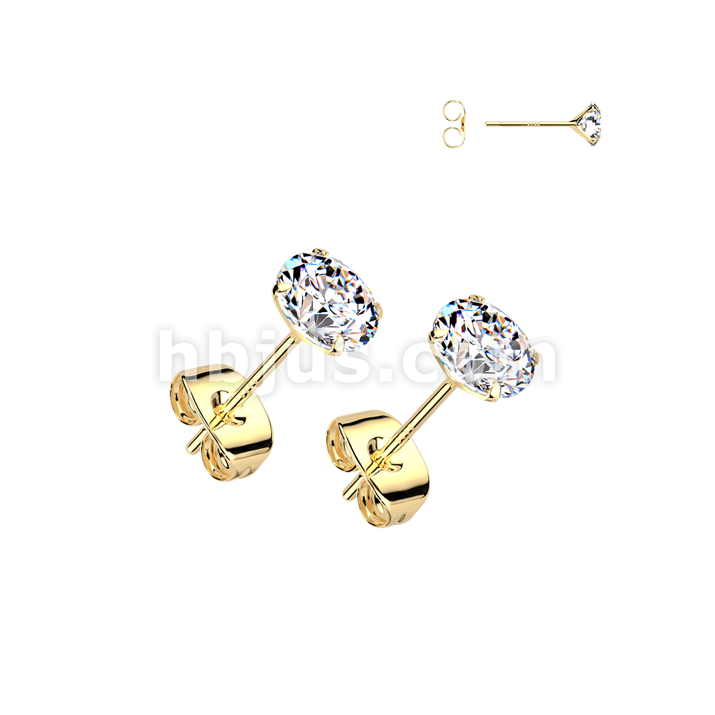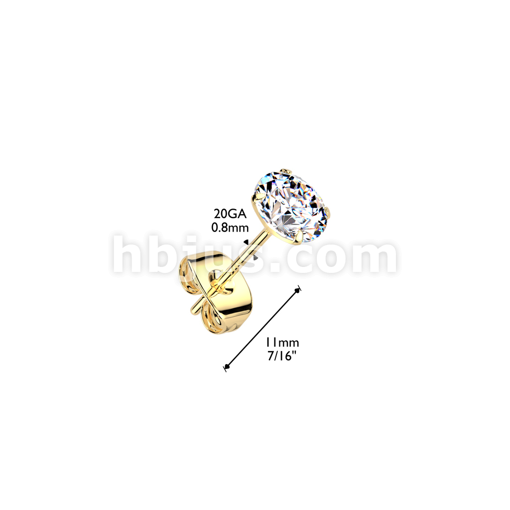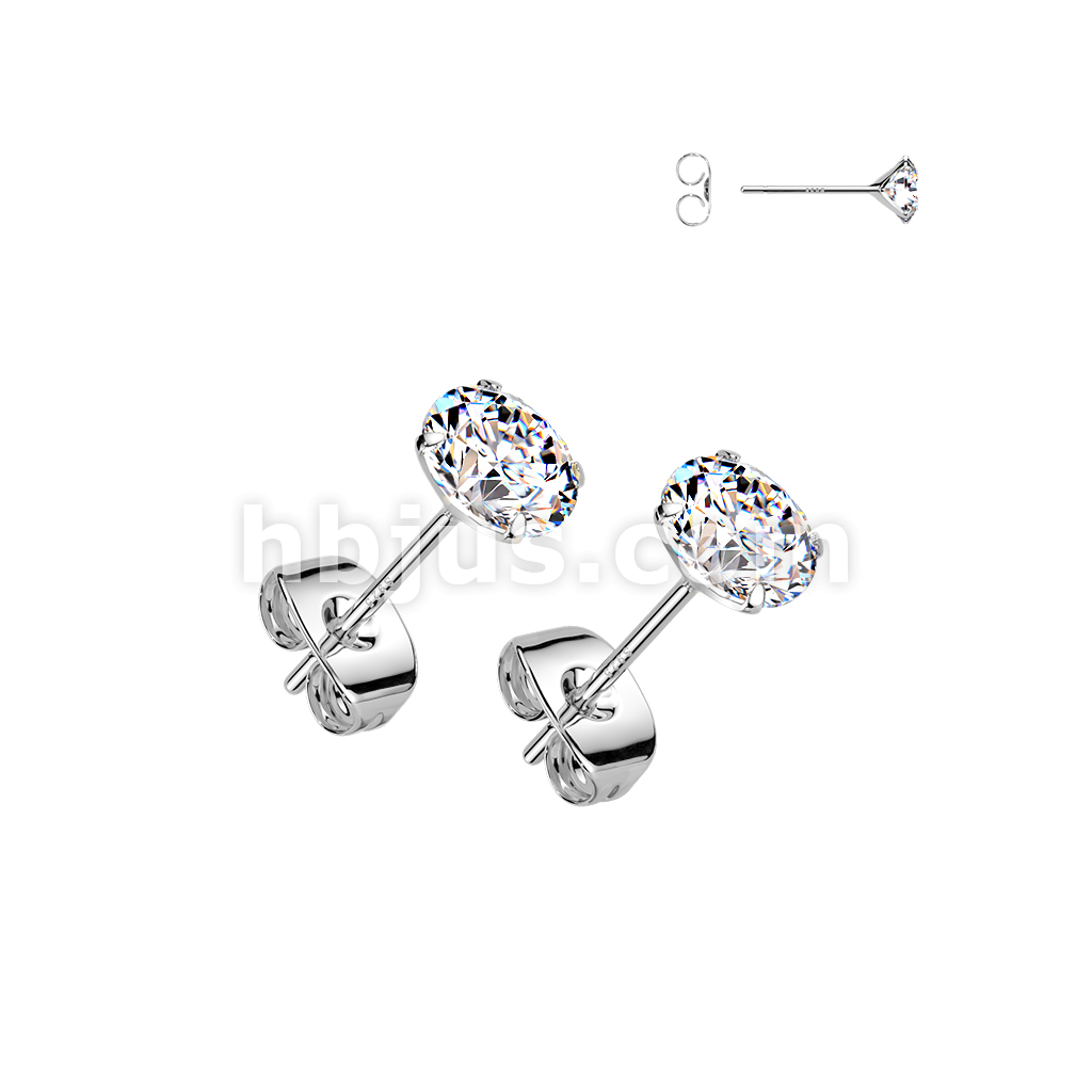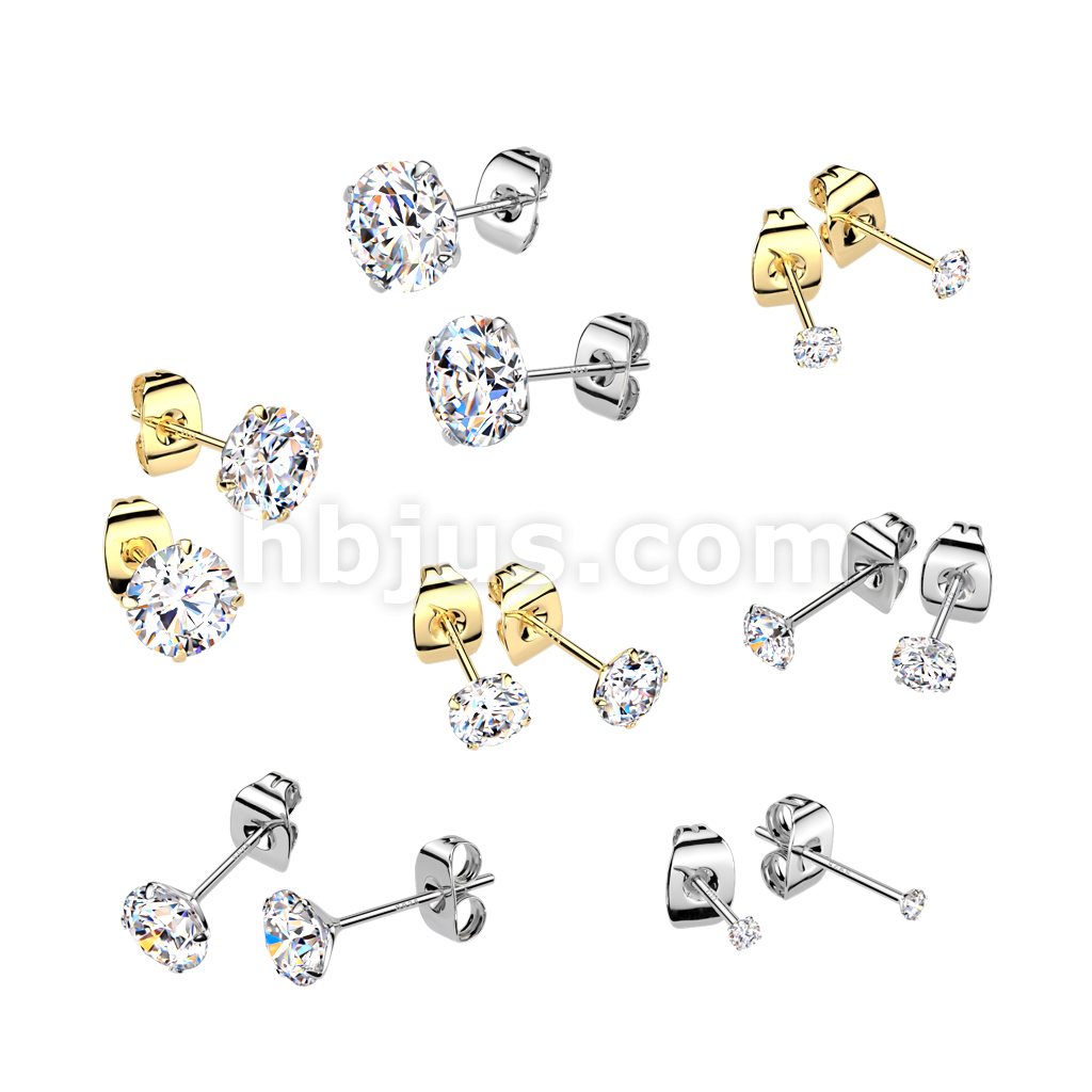 Pair of .925 Sterling Silver Stud Earrings With Prong Set Round CZ