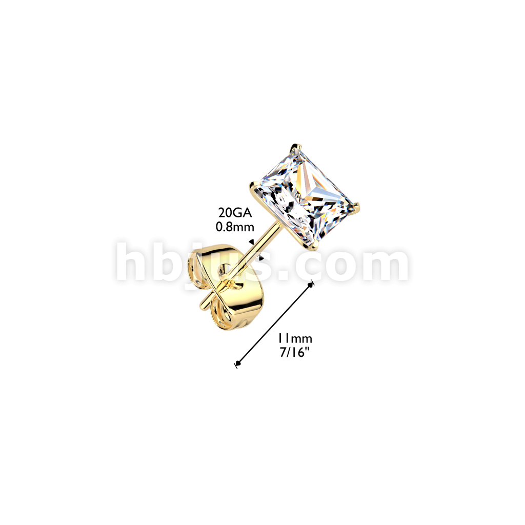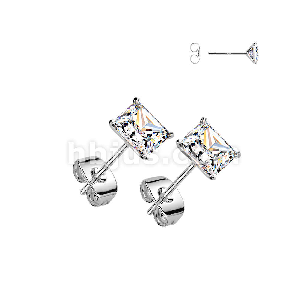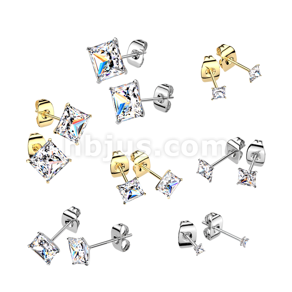 Pair of .925 Sterling Silver Stud Earrings With Prong Set Square CZ