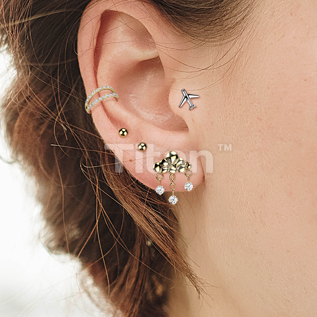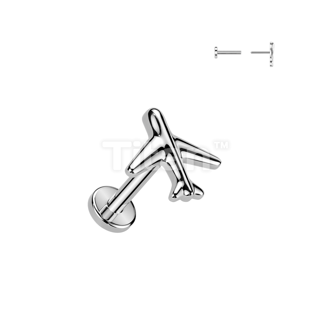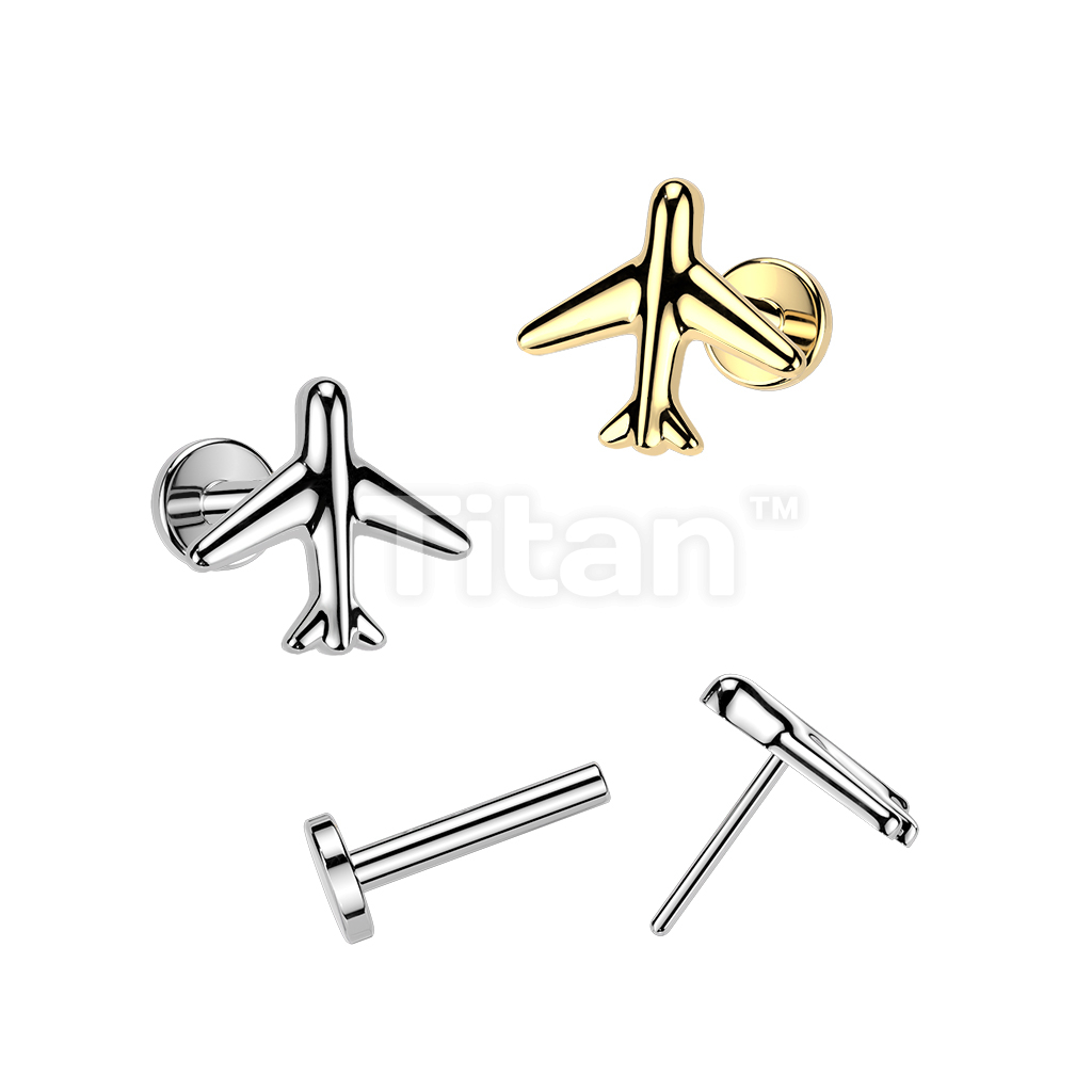 Titanium Threadless Push In Flat Back Earring Stud With Airplane Top