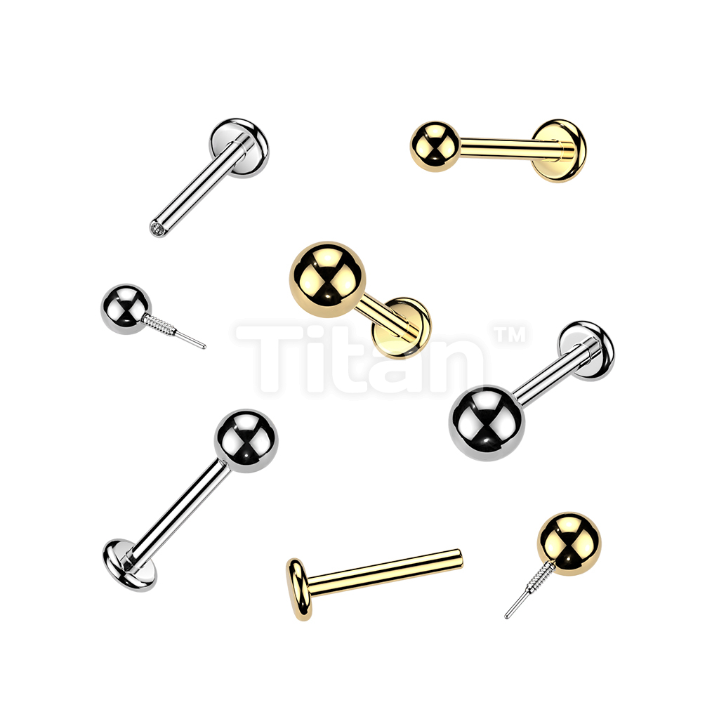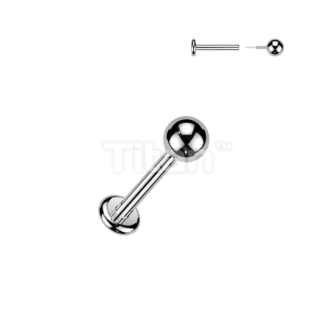 Titanium Internally Threaded 20G Long Thread Labret, Flat Back Stud With Ball Top