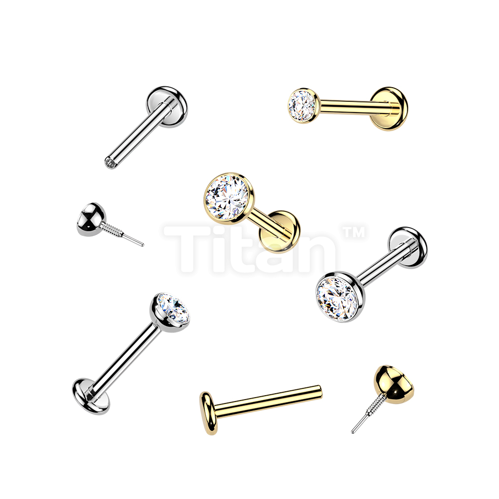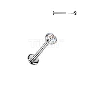 Titanium Internally Threaded 20G Long Thread Labret, Flat Back Stud With Bezel Set CZ Top