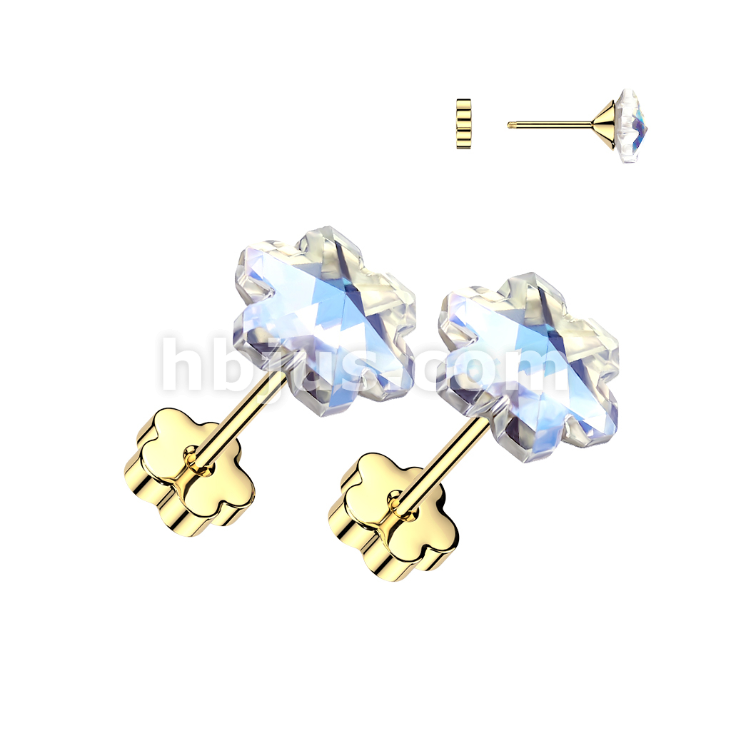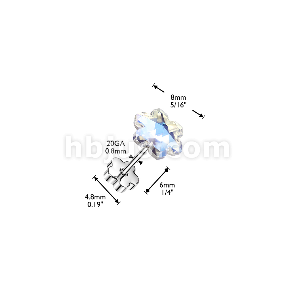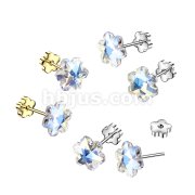 Pair of 316L Flower Aurora Borealis CZ Earring Studs With Flower Screw Back