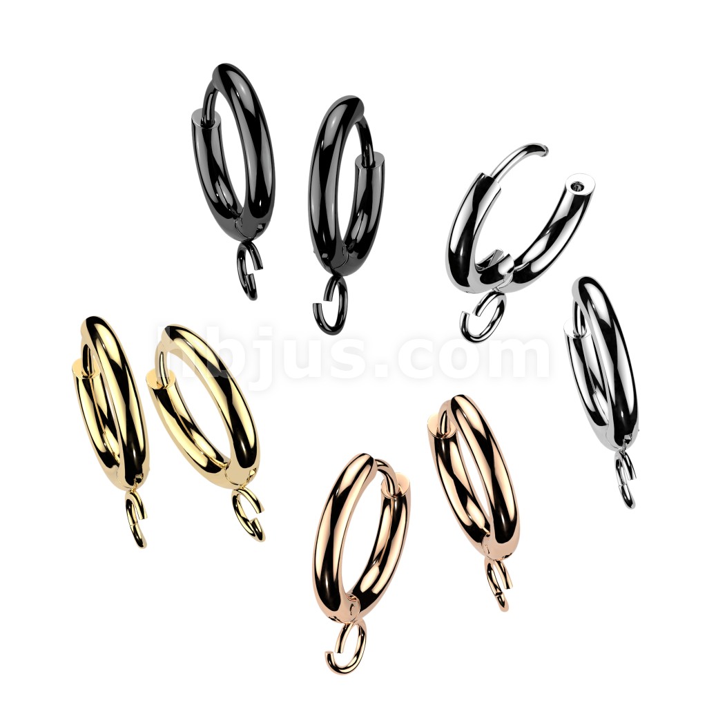 316L Surgical Steel Pair of Hinged Hoop Earrings With O-Ring For Charms