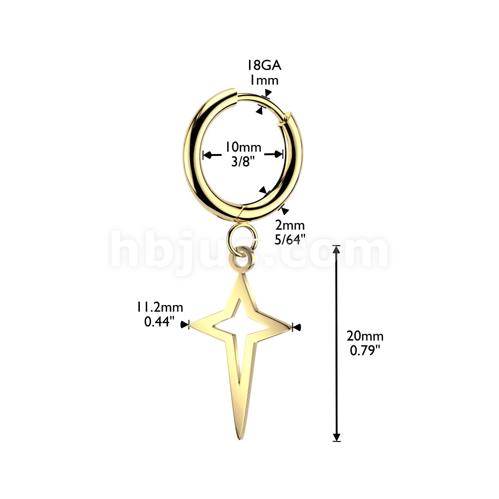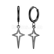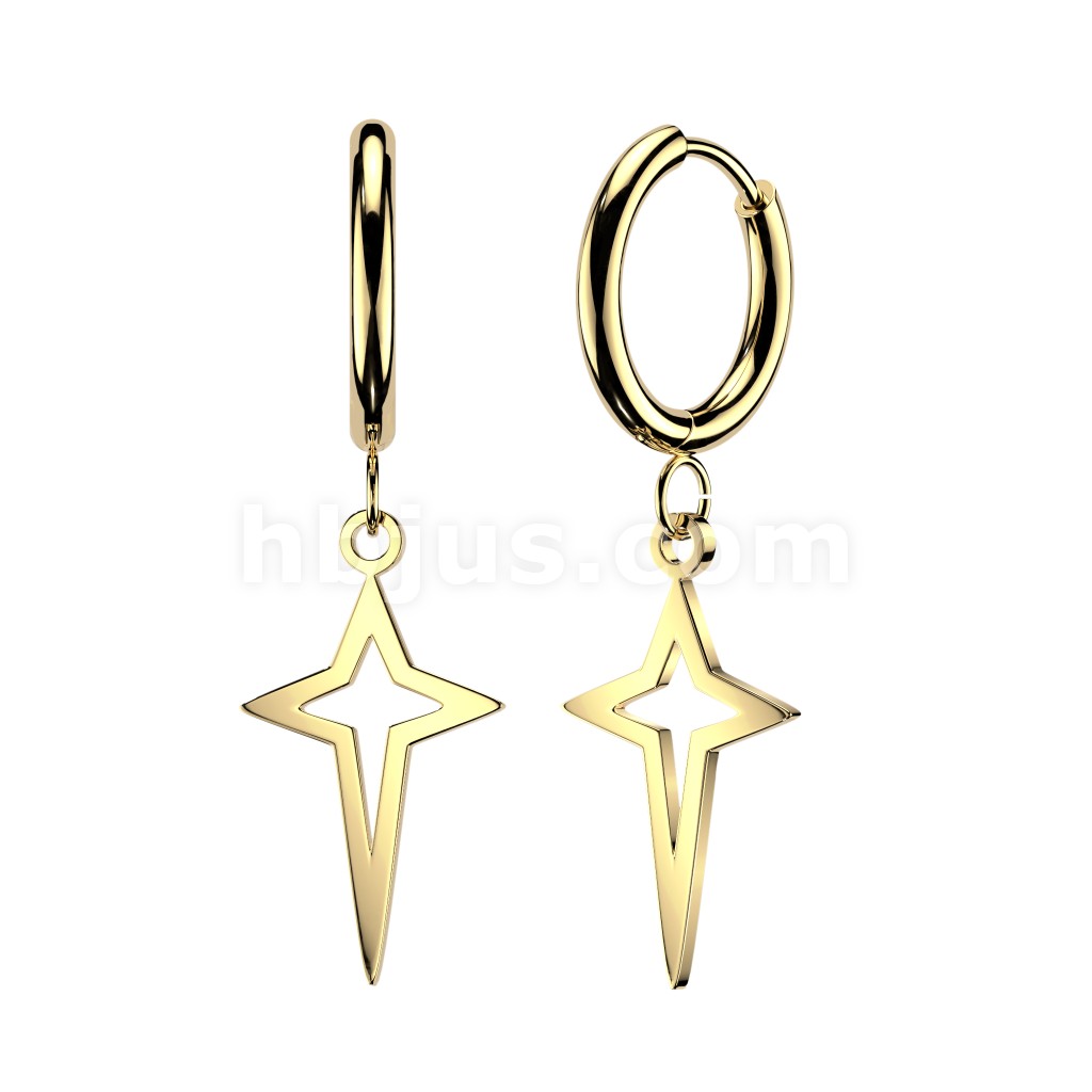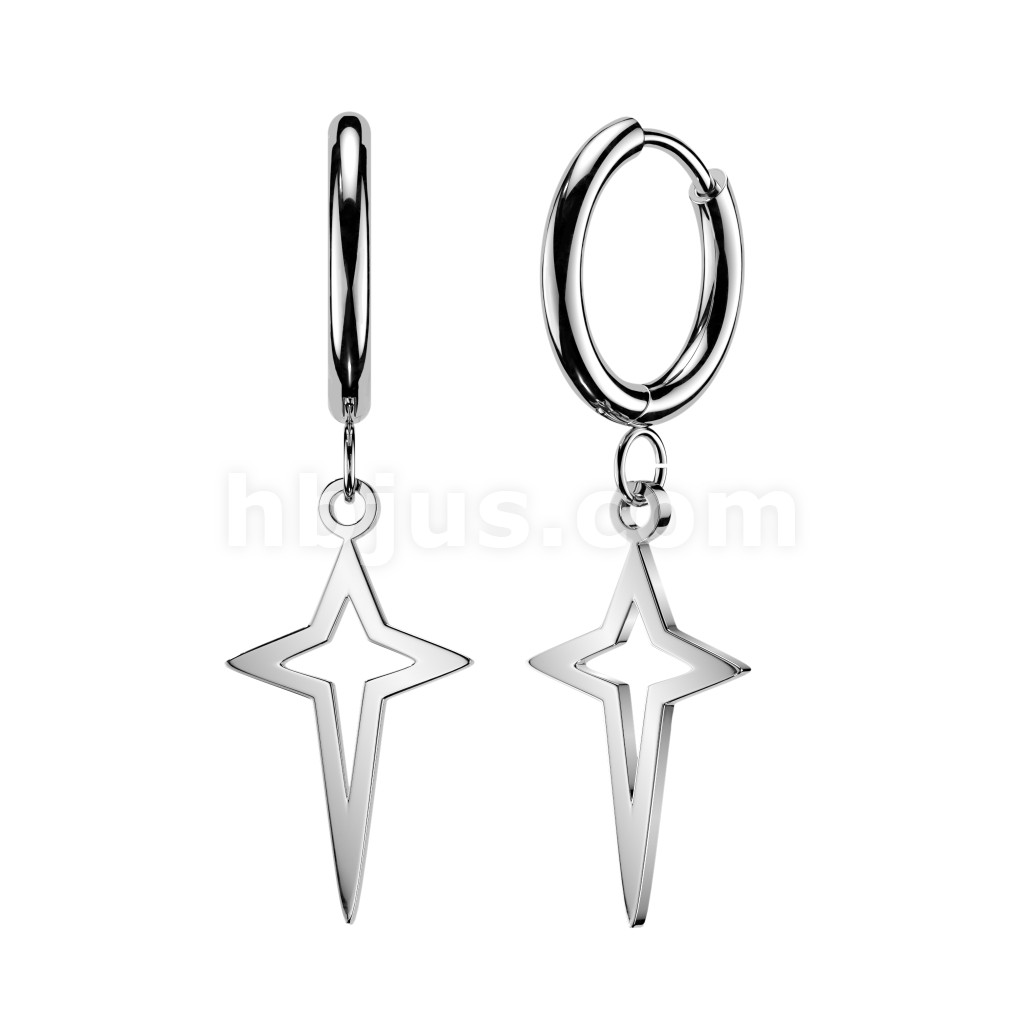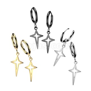 316L Surgical Steel Pair of Huggie Hoop Earrings With Small Star Cross Dangle