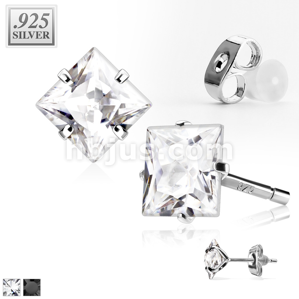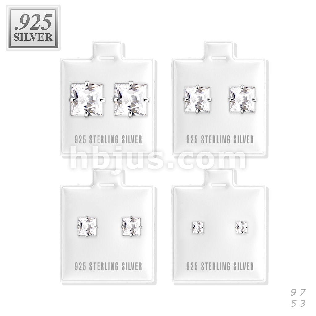 Pair of .925 Sterling Silver Stud Earring W/Square Cut CZ