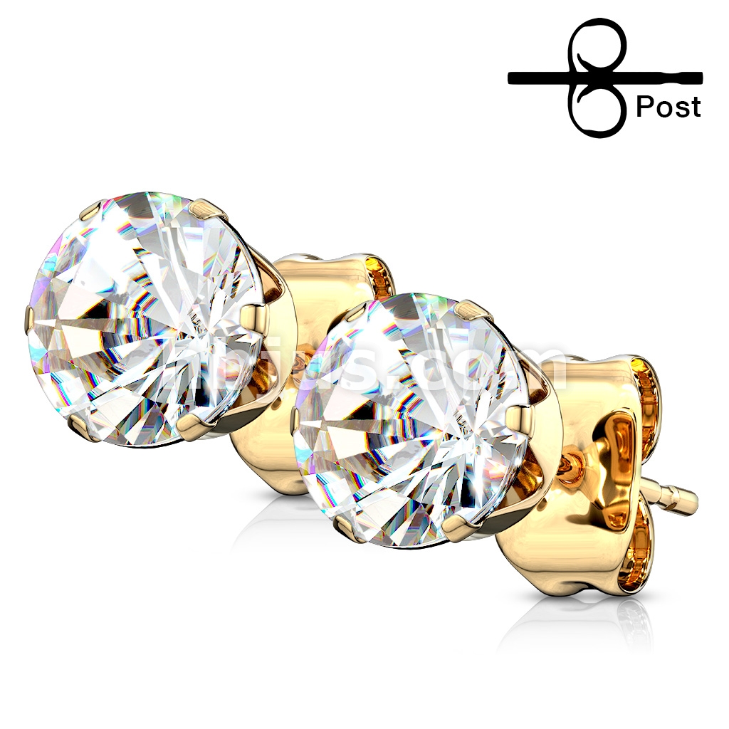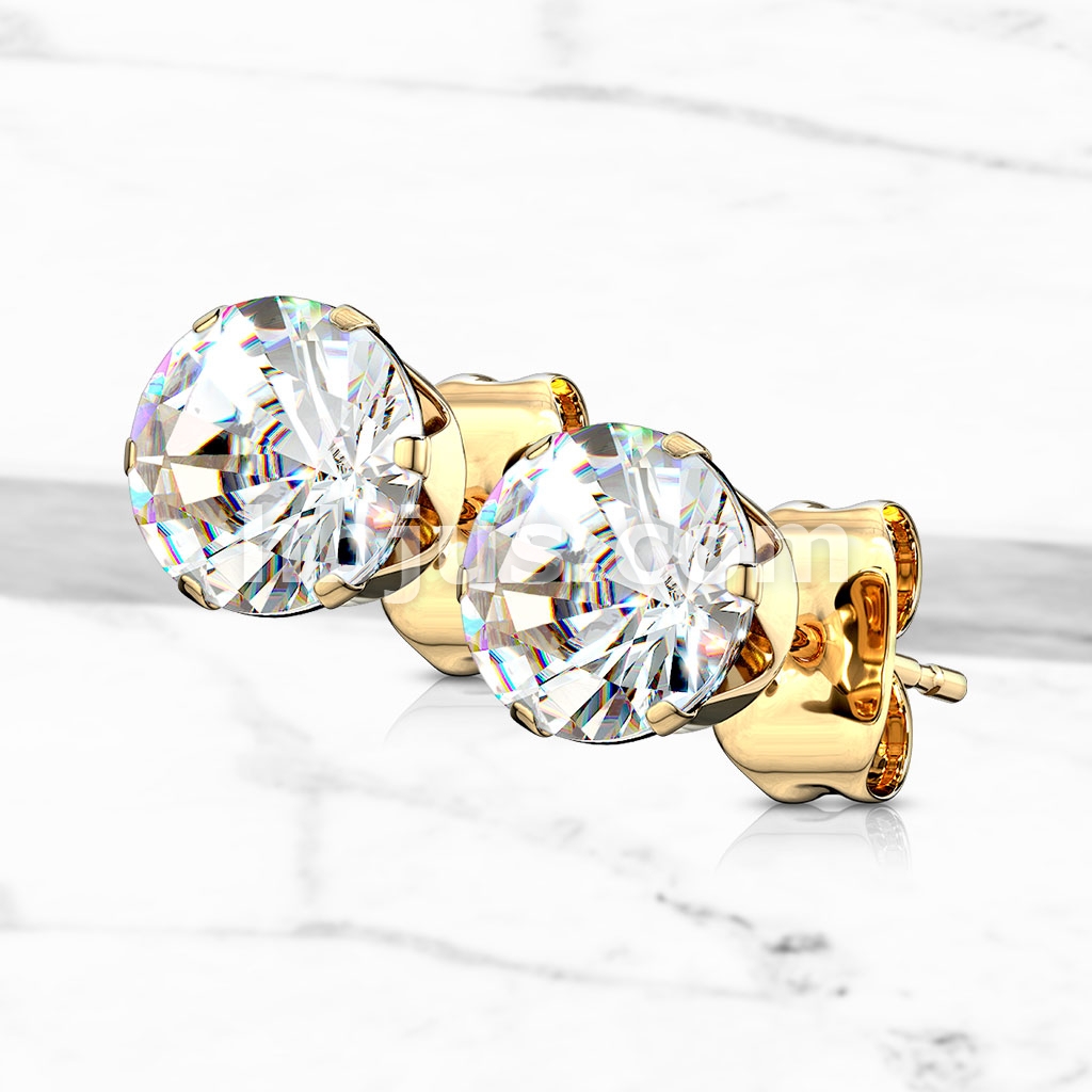 Pair of Gold IP 316L Stainless Steel Stud Earring with Round Clear CZ