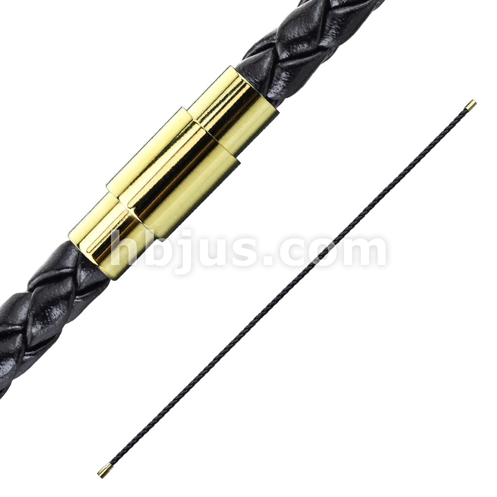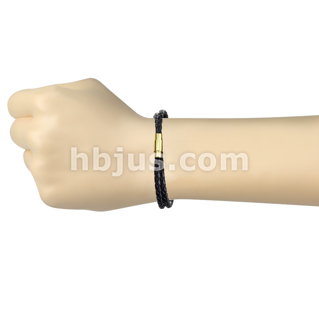 Double Wrap Black Bolo Braided Cord with Gold IP Magnetic Stainless Steel Clasp Leather Bracelet