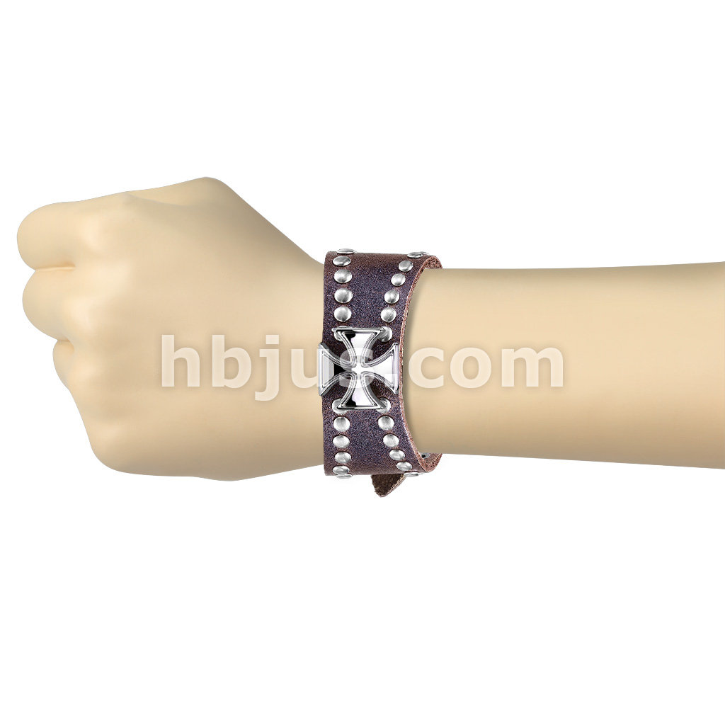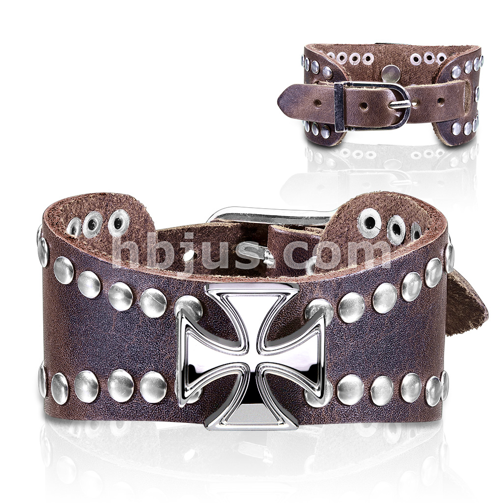 Brown Leather Bracelet with Celtic Cross and Multi Dome Studs