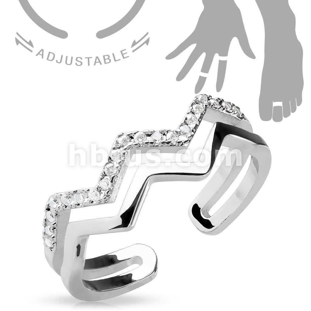 Adjustable Toe Ring/Mid Ring Pave CZ Logo Graphic