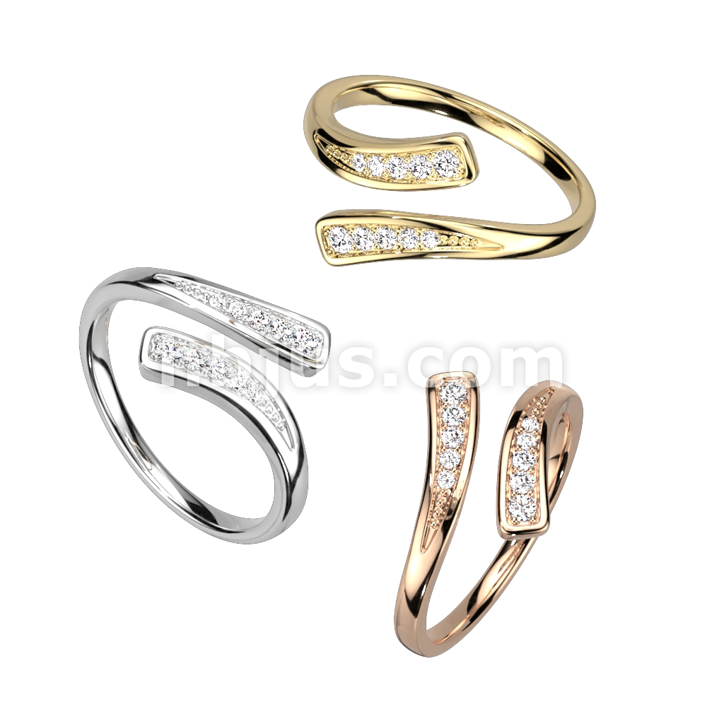 Multi-Paved CZ Adjustable Rhodium Plated Brass Overlap Mid-Ring/Toe-Ring