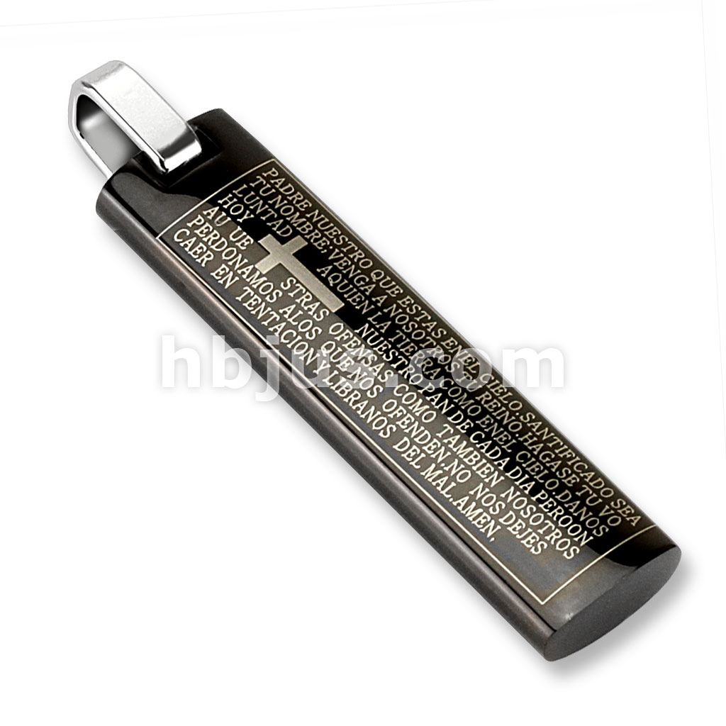 Gold Lord's Prayer in Spanish on Black IP Cylinder Tag Stainless Steel Pendant