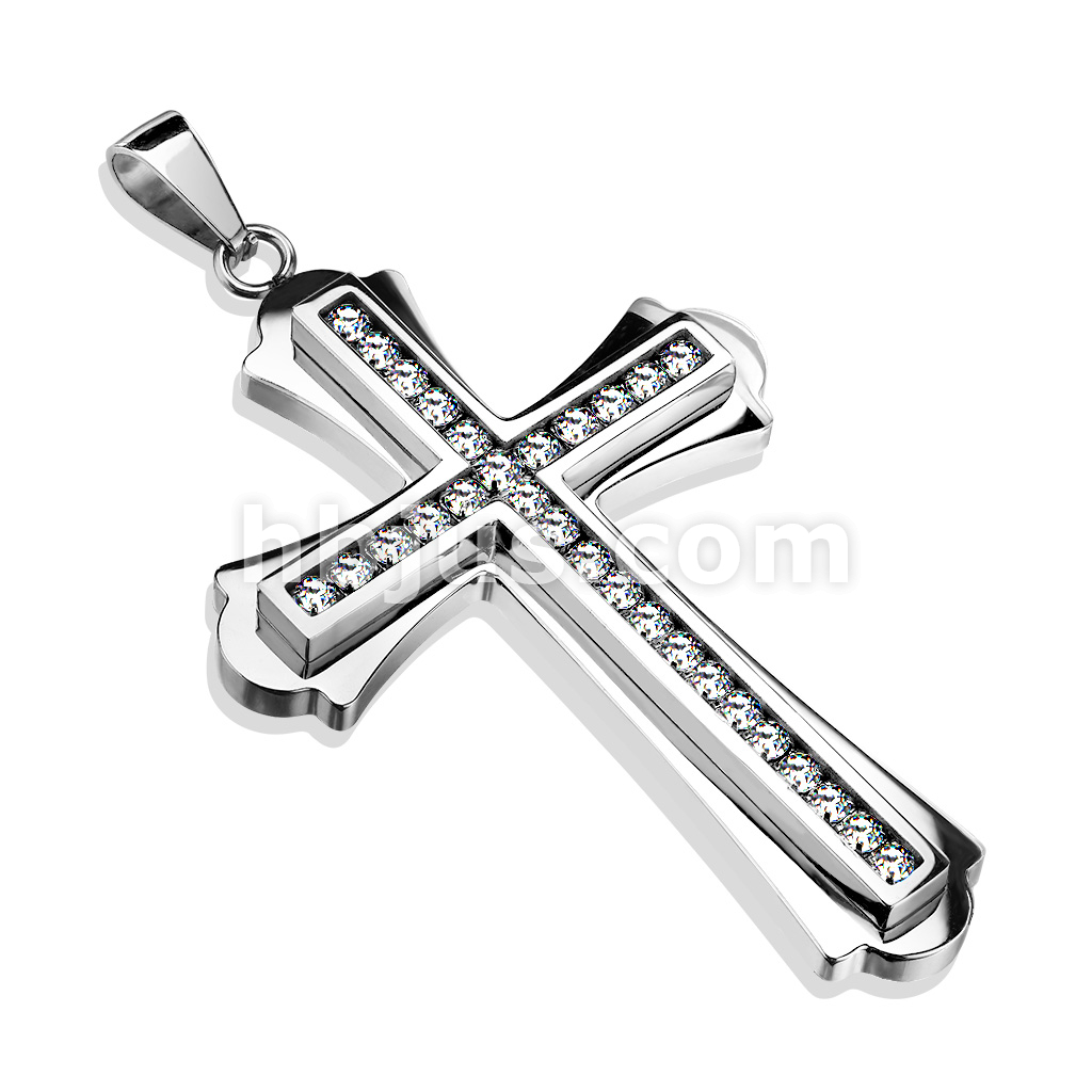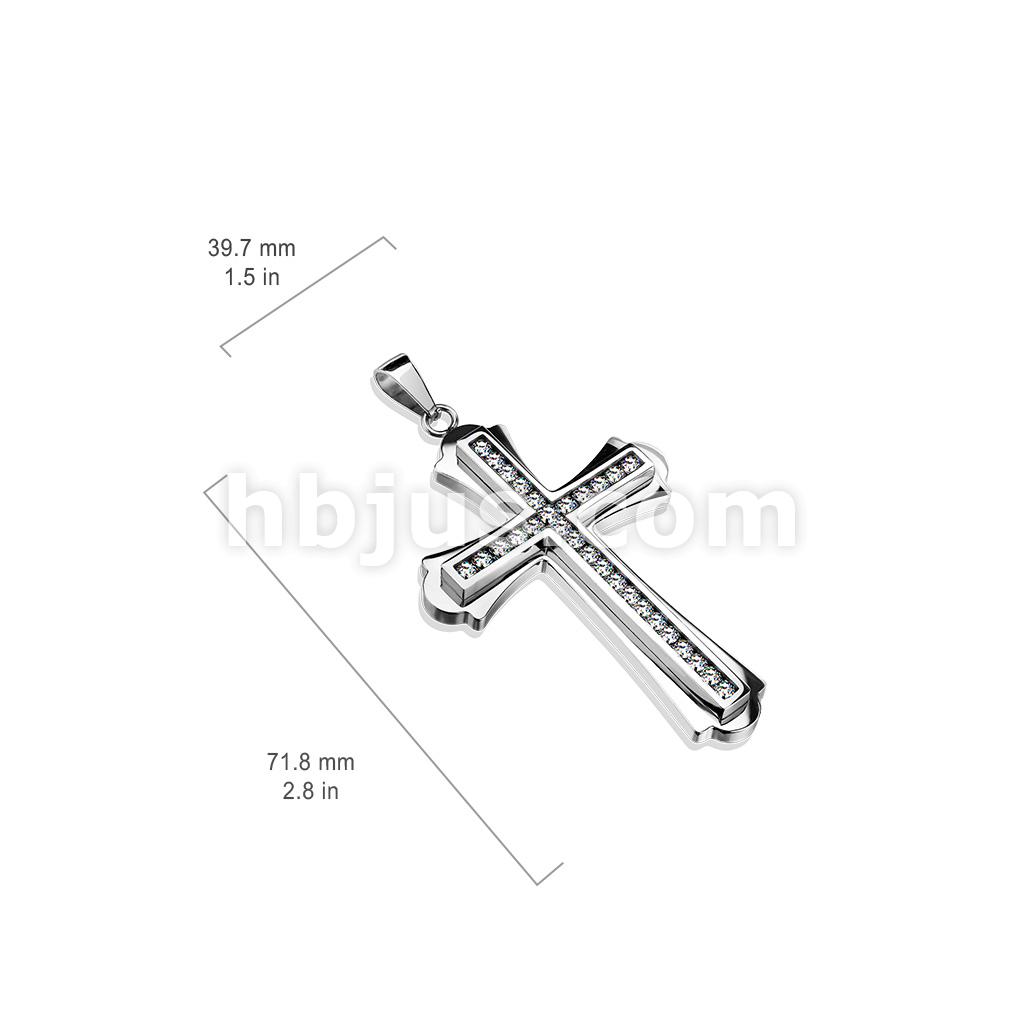 Layered Cross with Multi-CZ 316L Stainless Steel Pendant