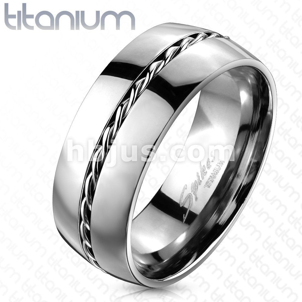 Rope Twist Inlay Center Band Ring Solid Titanium