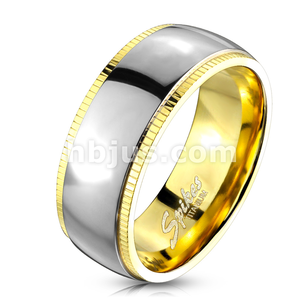 Grooved Edges Gold Plated with Center Titanium Band Ring