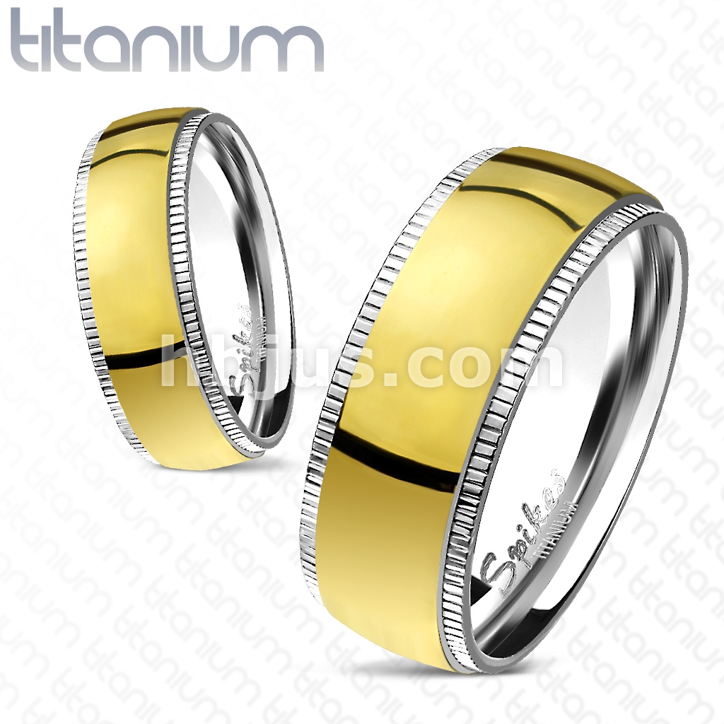 Grooved Solid Titanium Edges with Gold IP Dome Center Band Ring
