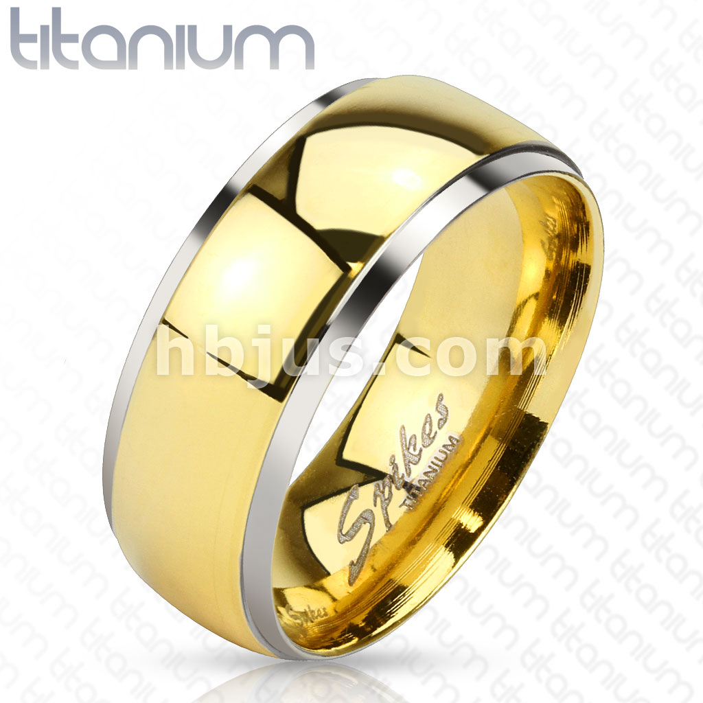 Smooth Stepped Edge with Gold IP Dome Band Ring Solid Titanium