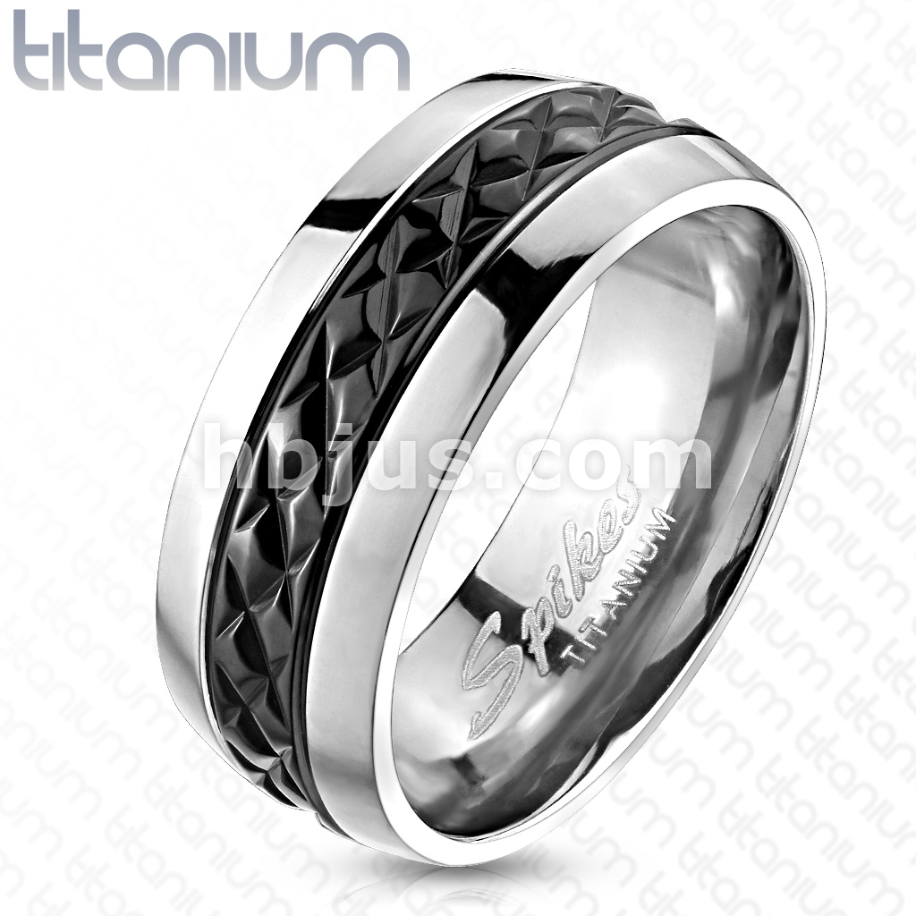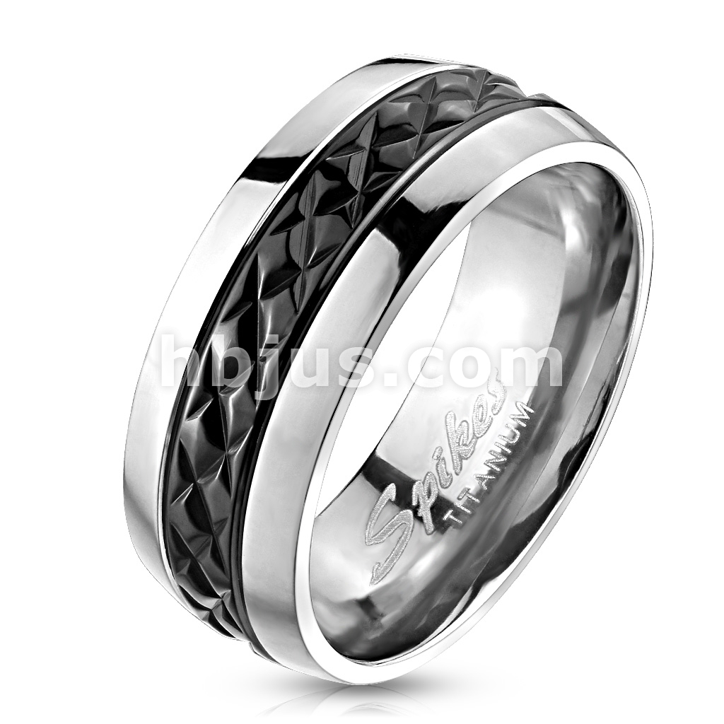 Diagonal Cut Pattern Black IP Centered Ring Titanium