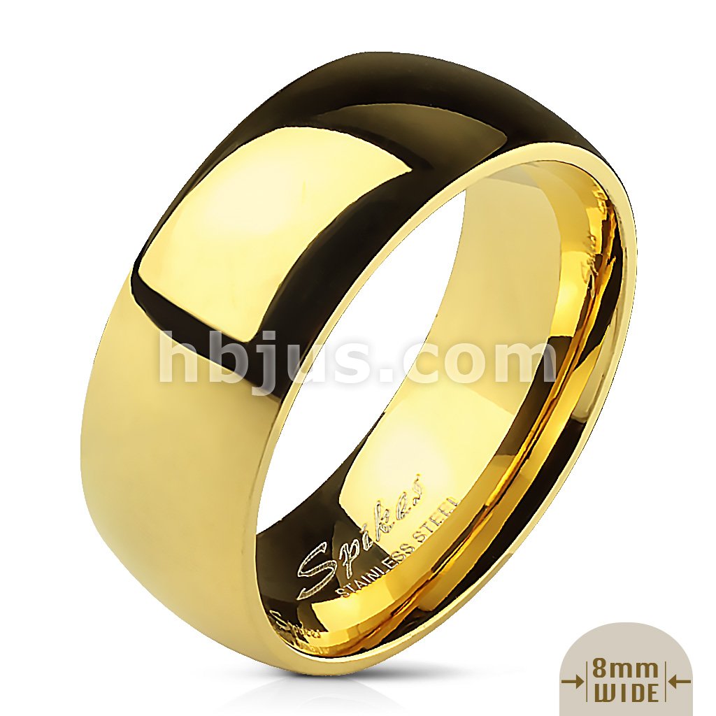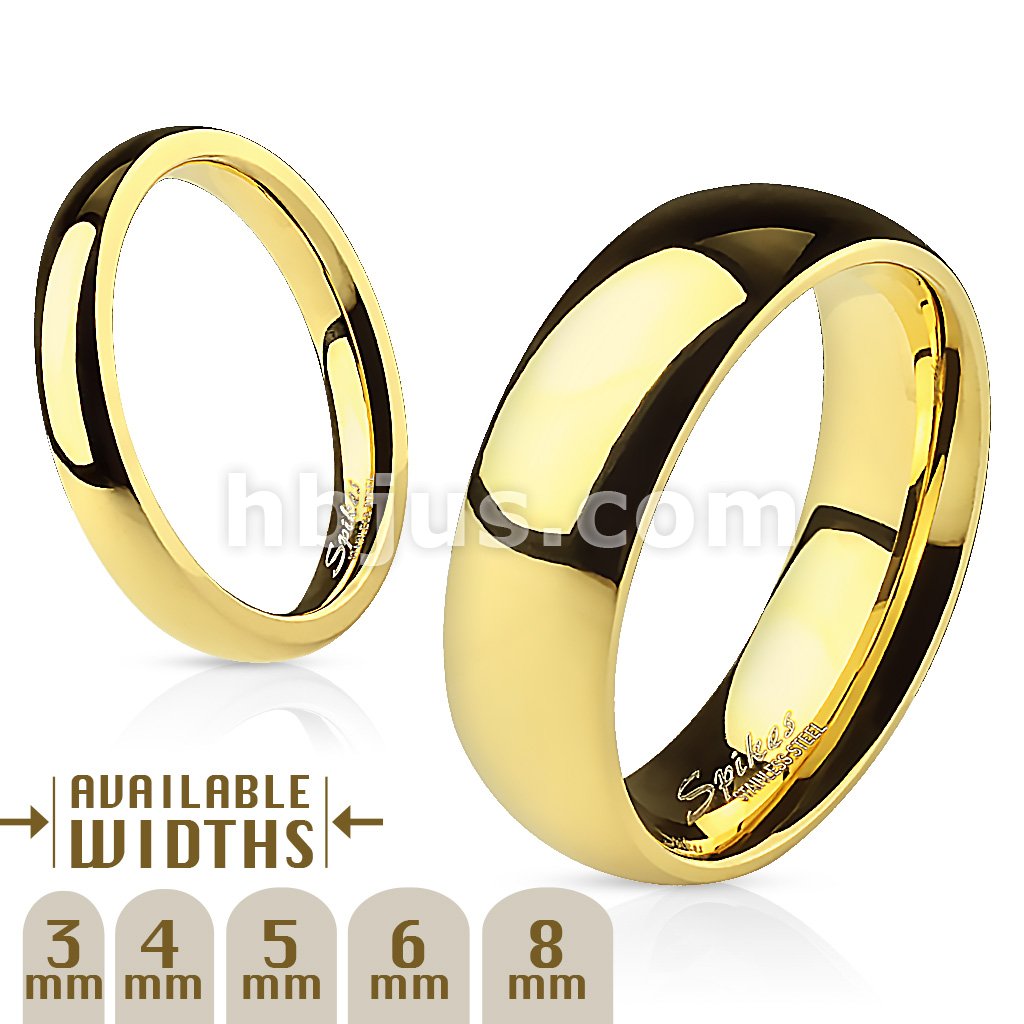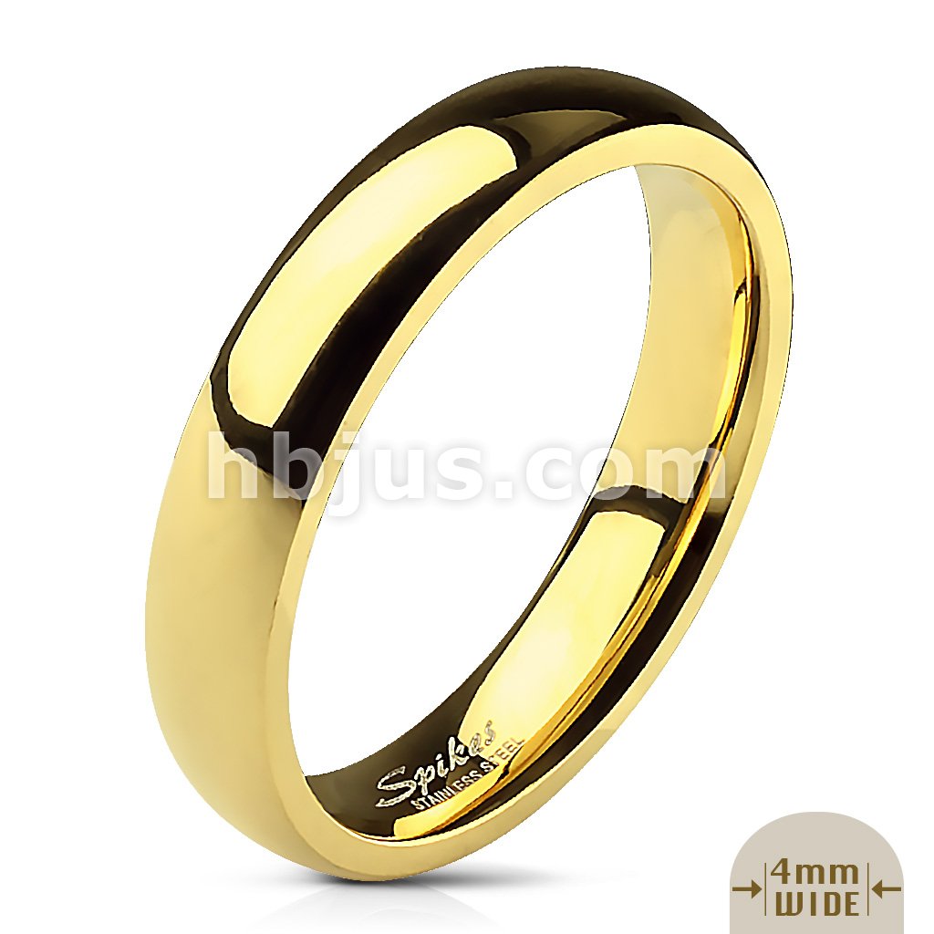 Glossy Mirror Polished Gold IP Traditional Wedding Band Ring 316L Stainless Steel
