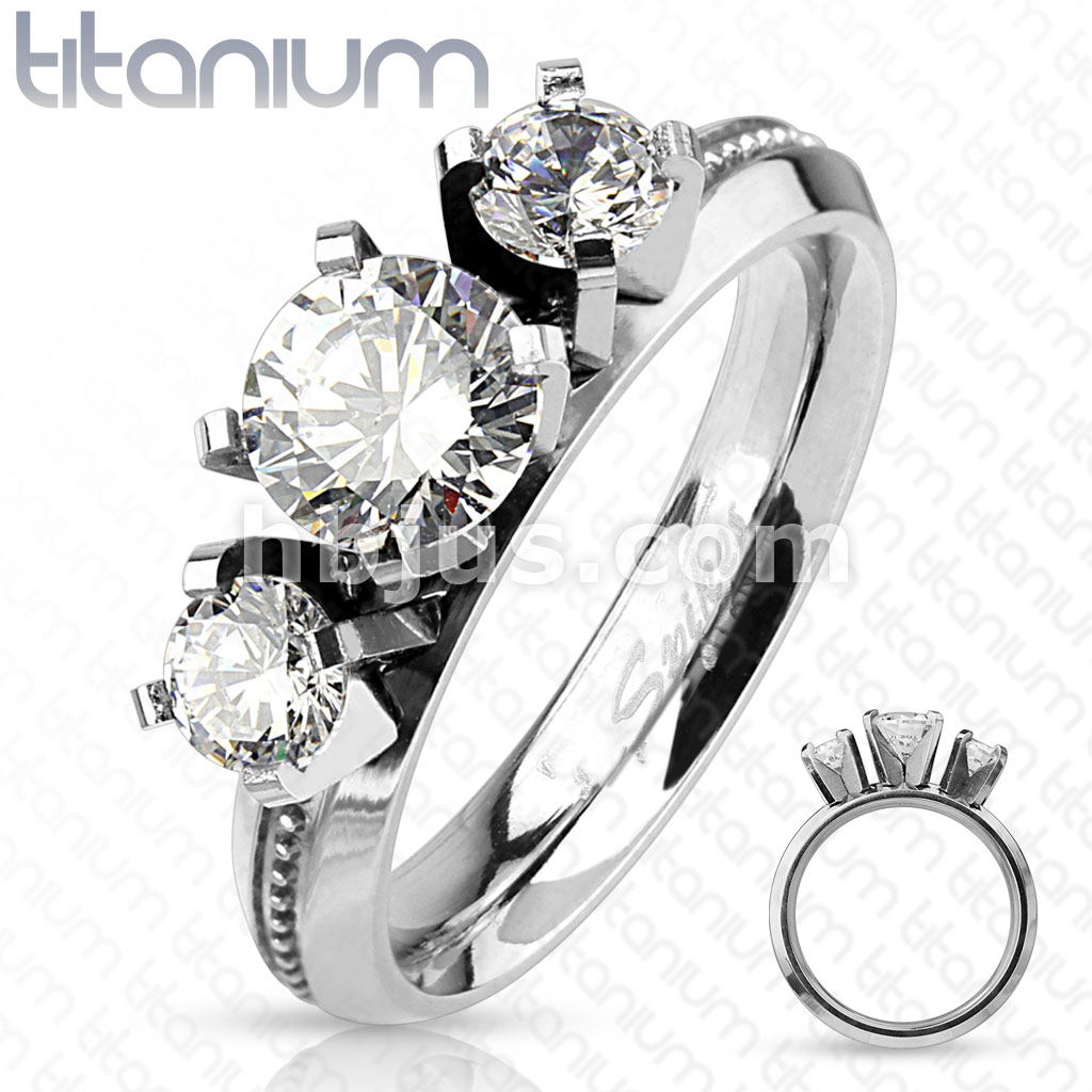 Triple Round Cut CZ with Milled Center Titanium Engagement Ring