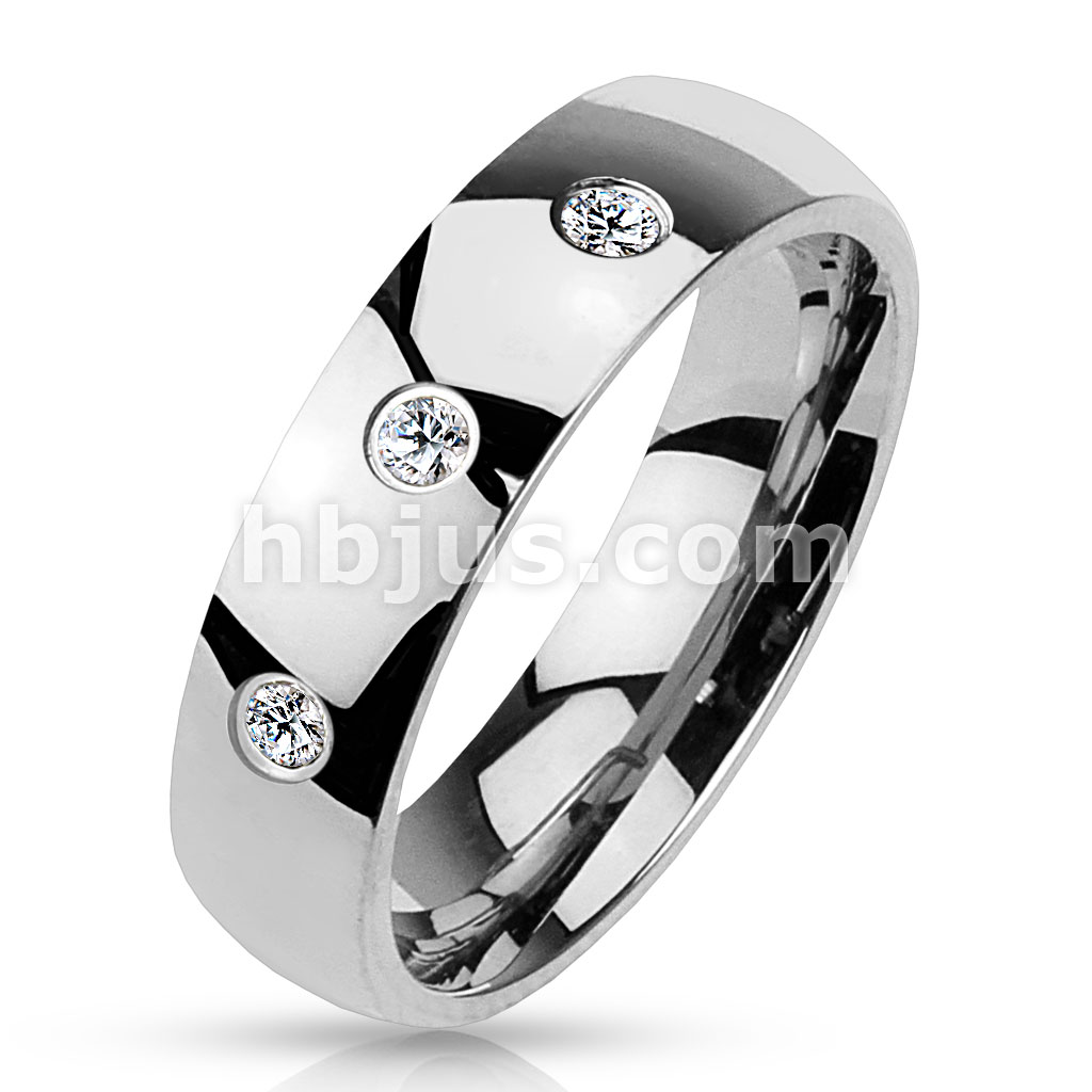 3 CZ Set Classic Dome 316L Stainless Steel Rings