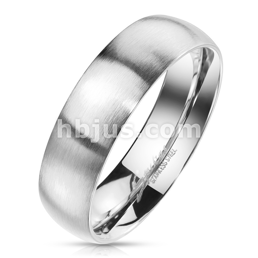 Matte Finish Surface and Shiny Polished Sides and Inside Classic Dome Stainless Steel Band Rings
