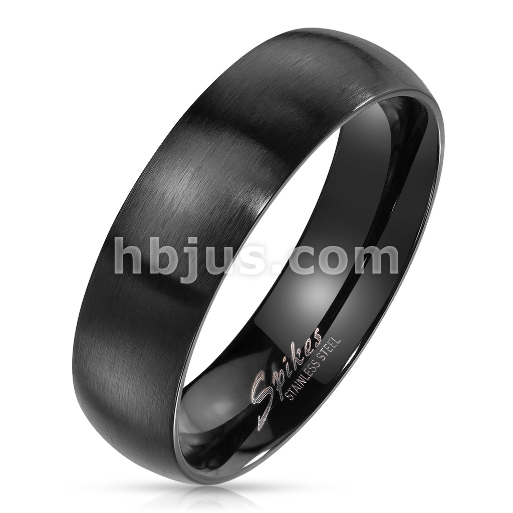 Matte Finish Surface and Shiny Polished Sides and Inside Classic Dome Black PVD Stainless Steel Band Rings