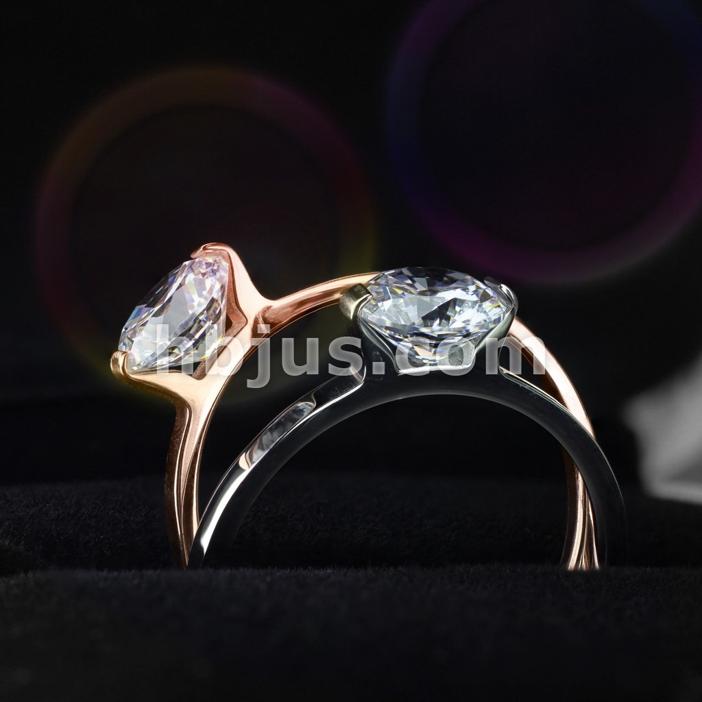 Round Solitaire CZ Set Engagement Stainless Steel Ring/Rose Gold IP