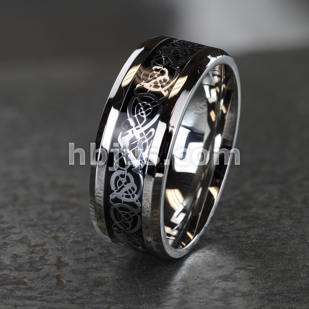 Celtic Dragon Steel Foil Inlaid Stainless Steel Ring