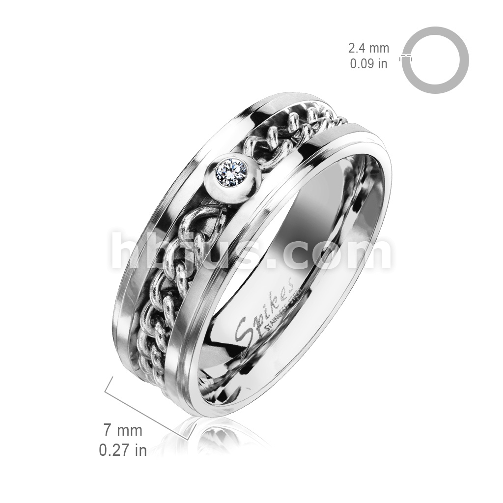 CZ Set Chain Inlay Stepped Edges Stainless Steel Rings