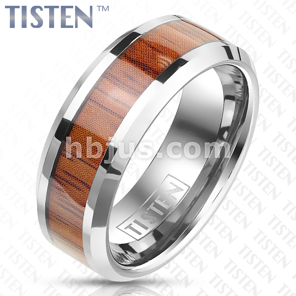 Wood Inlaid Center With Beveled Edges Tungsten Titanium Alloy TISTEN Rings
