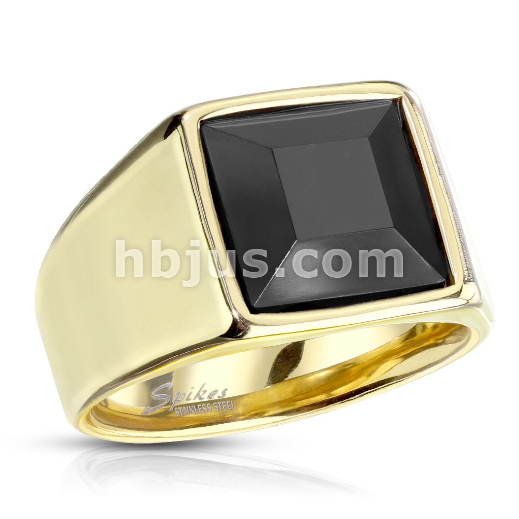 Faceted Square Onyx Stone Gold PVD Stainless Steel Ring