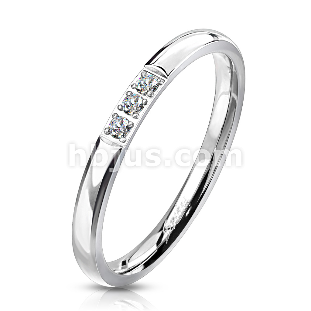 CNC Machine Set Triple CZ Center Stainless Steel Band Ring